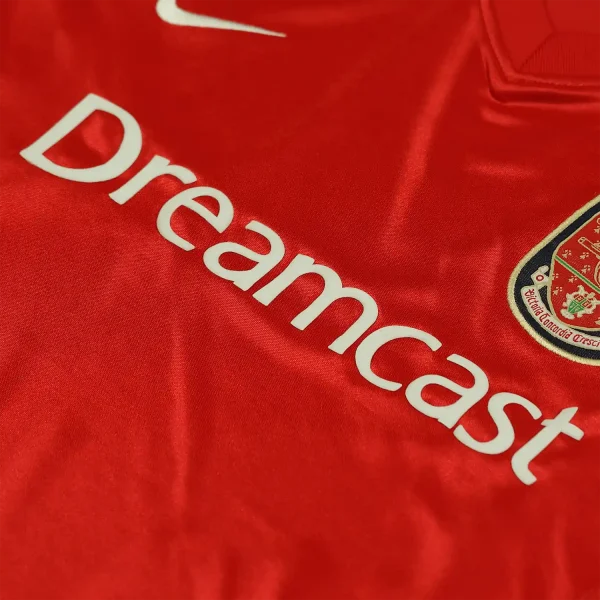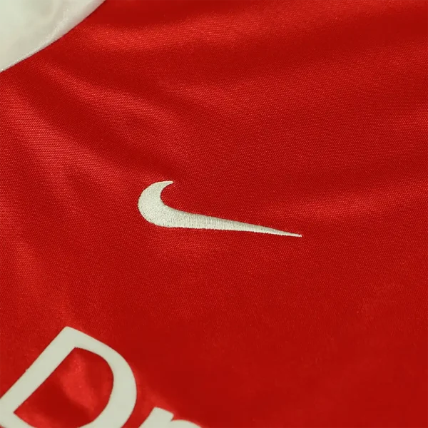 Designed by Nike, Arsenal’s 2001-02 home shirt features a classic red body with white sleeves, reflecting Arsenal’s traditional colour style.