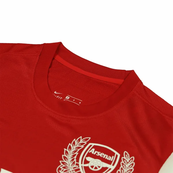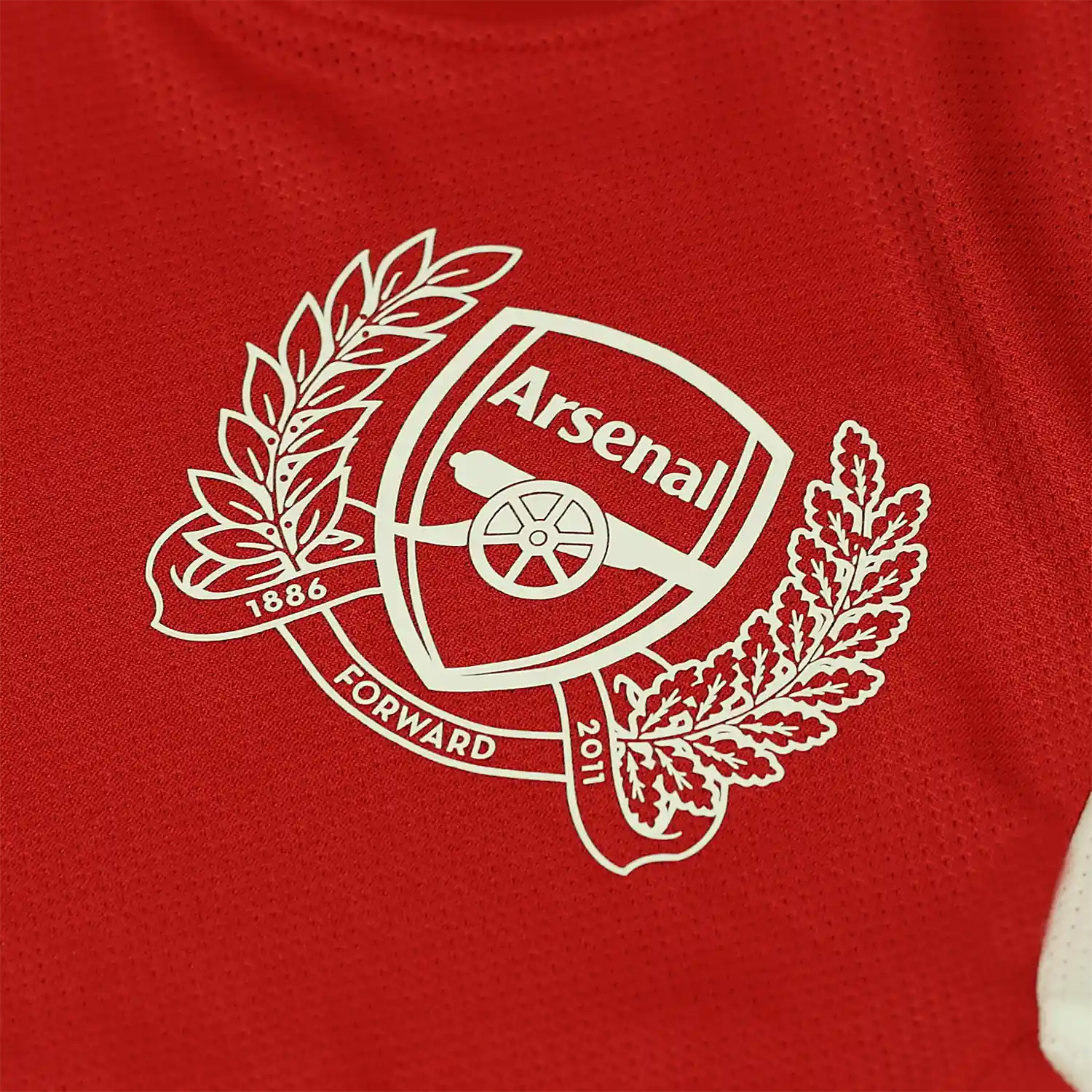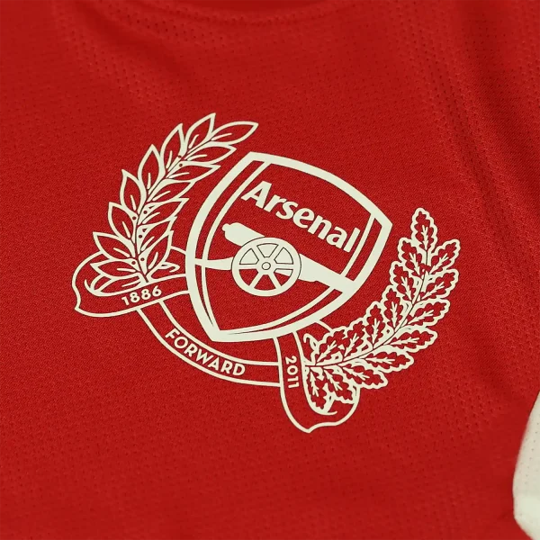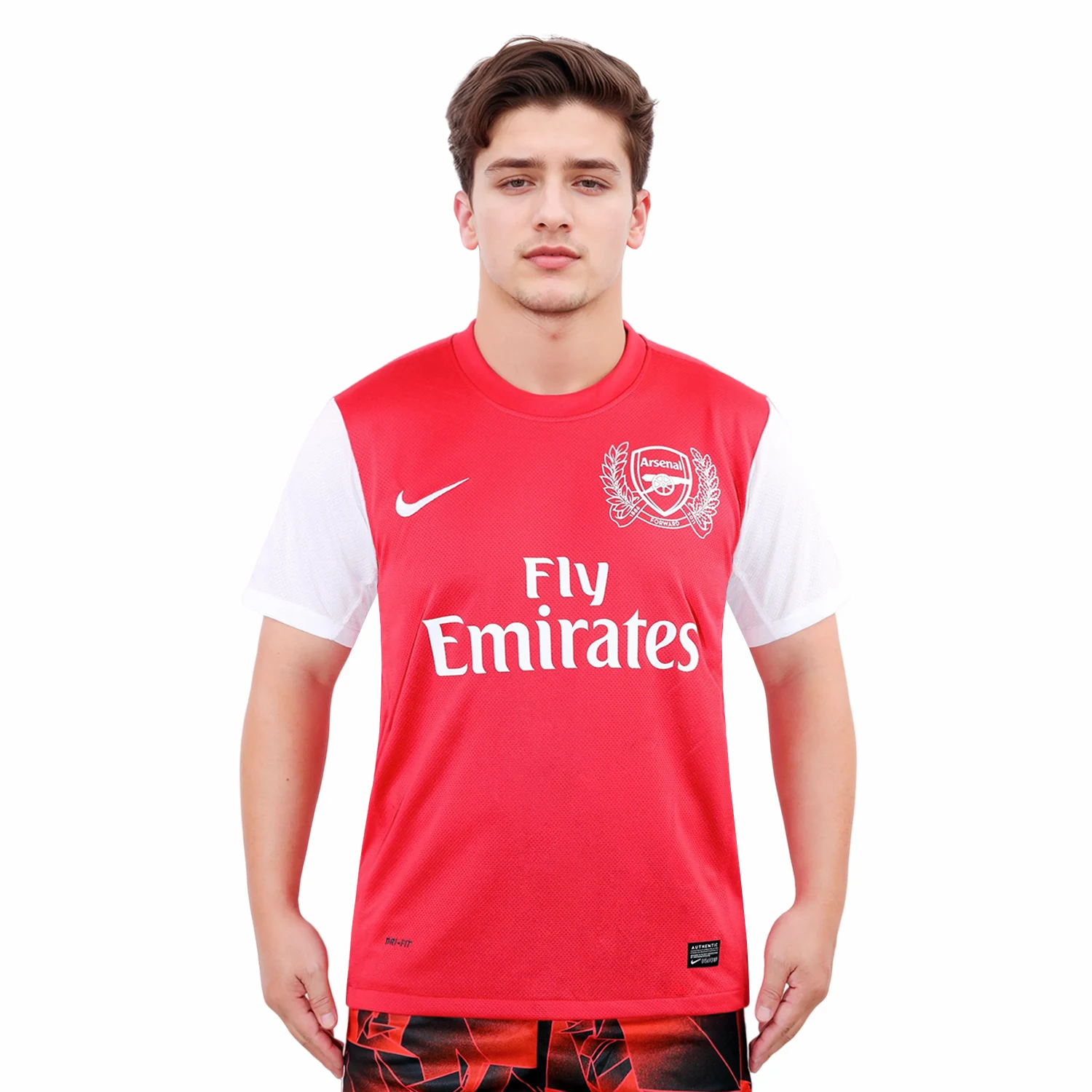 The Arsenal 2011-12 home shirt is a notable piece of football memorabilia, celebrated for its design and the players who wore it. Manufactured by Nike, the shirt features a classic red body with white sleeves, a design synonymous with Arsenal’s traditional home kit. This particular season’s shirt is also marked by its 125th-anniversary crest, commemorating the club’s long history.