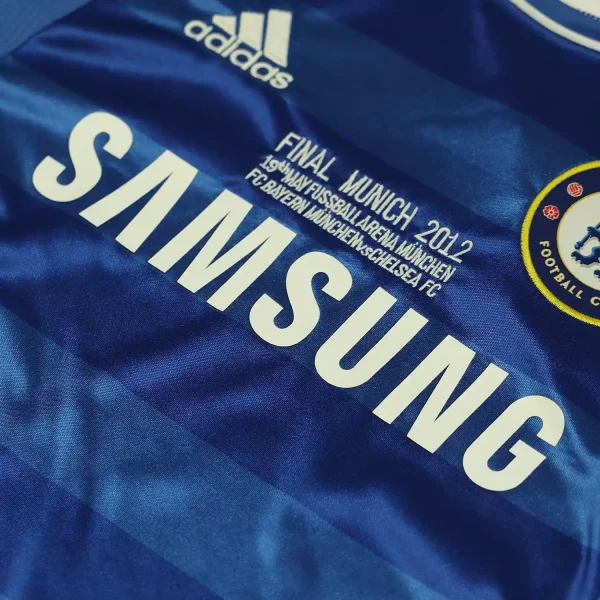 The Chelsea 2012 UCL Final shirt is a memorable piece of football history, worn during Chelsea’s victorious Champions League final against Bayern Munich. The shirt features a classic blue design with the ‘Final Munich 2012’ details prominently displayed.