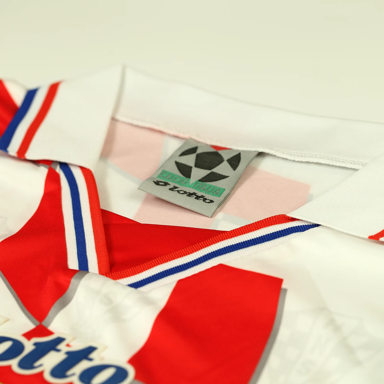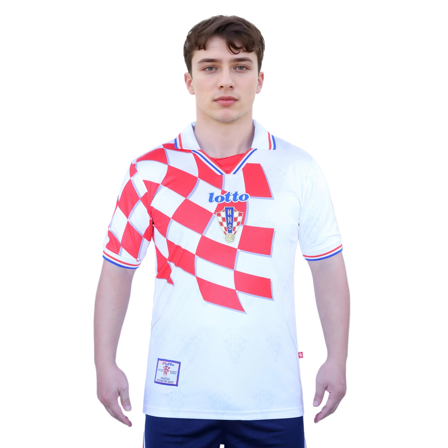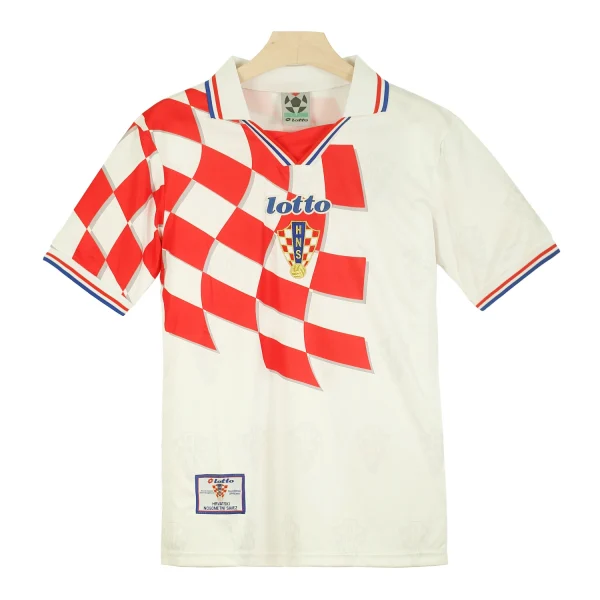 The Croatia 1998 home shirt is a cherished symbol of national pride and footballing excellence, known for its distinctive design and association with the country’s remarkable performance in the 1998 FIFA World Cup. Crafted by Lotto, this shirt is instantly recognizable and holds a special place in football history.
