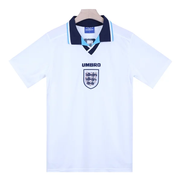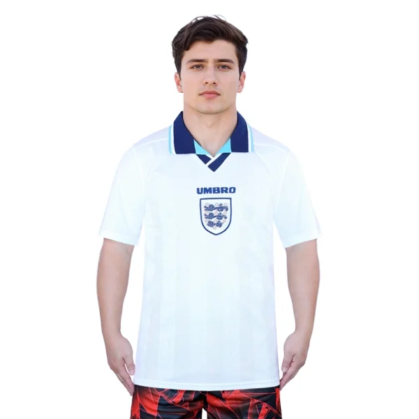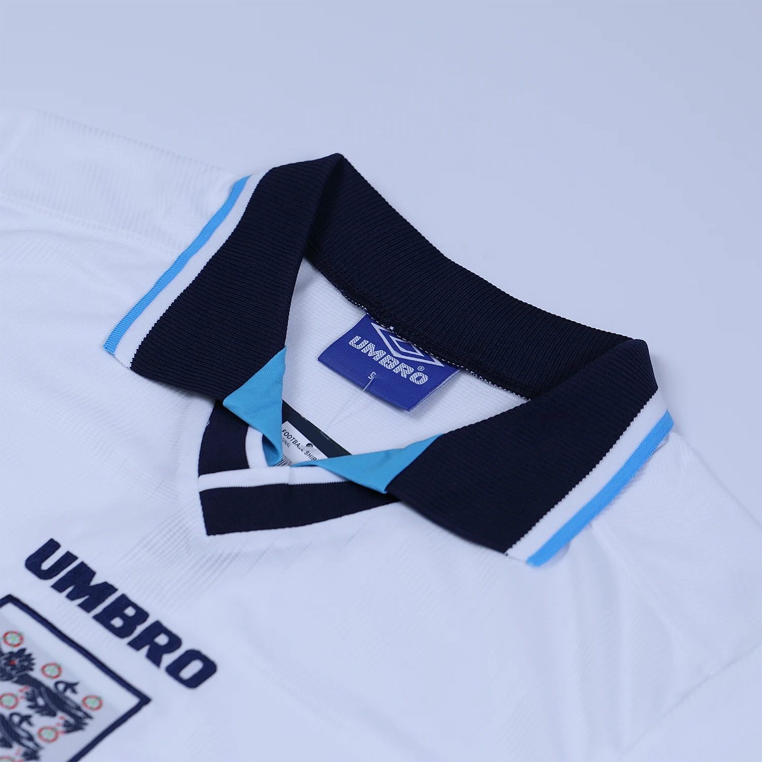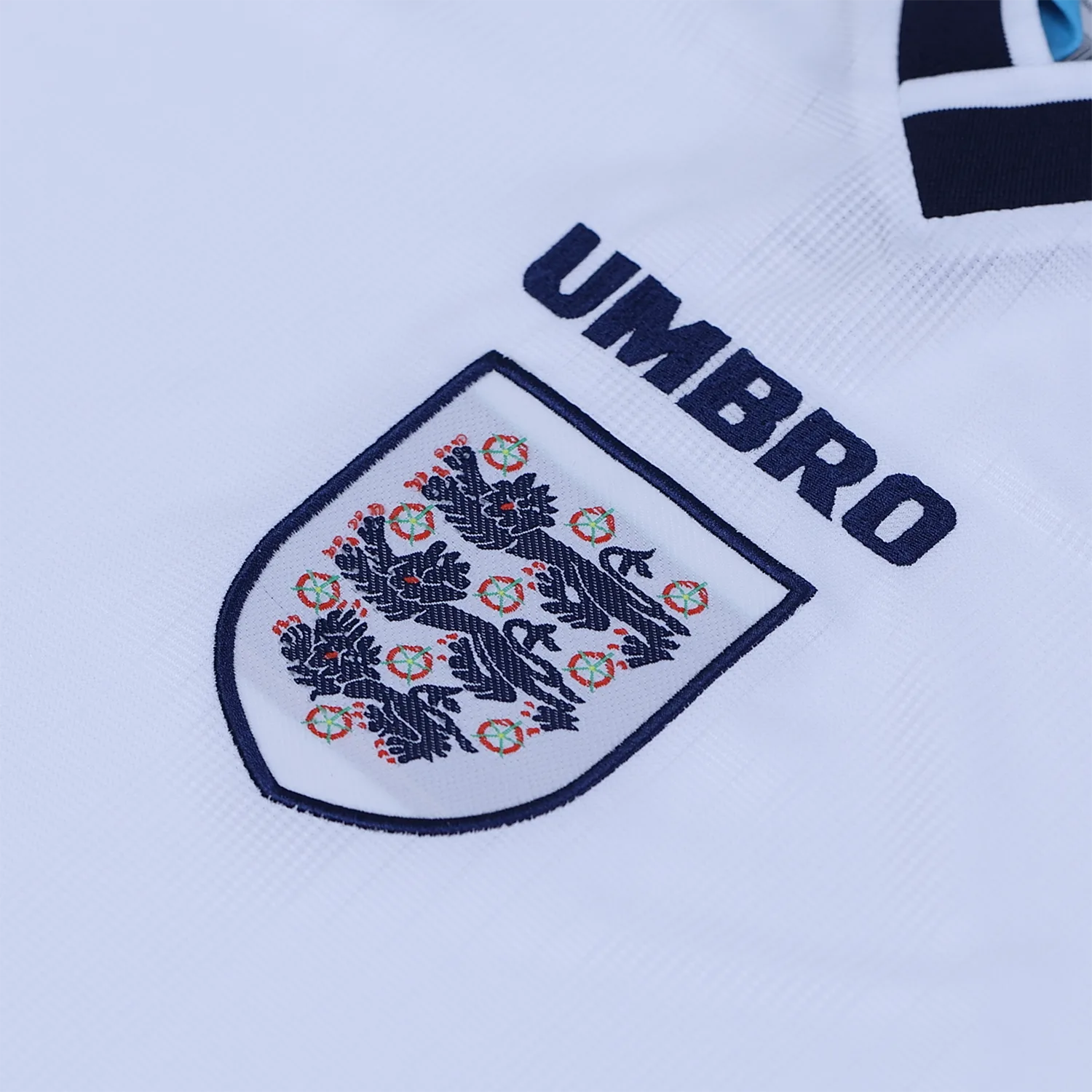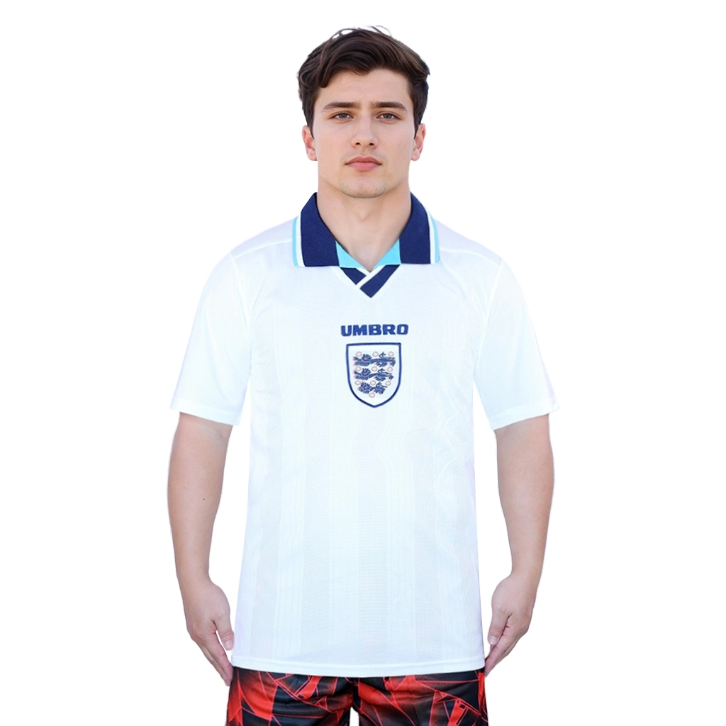 The England 1996 home shirt is an iconic piece of football apparel, closely associated with the UEFA Euro 1996 tournament hosted by England. Known for its distinctive and nostalgic design, this shirt remains a favorite among fans.