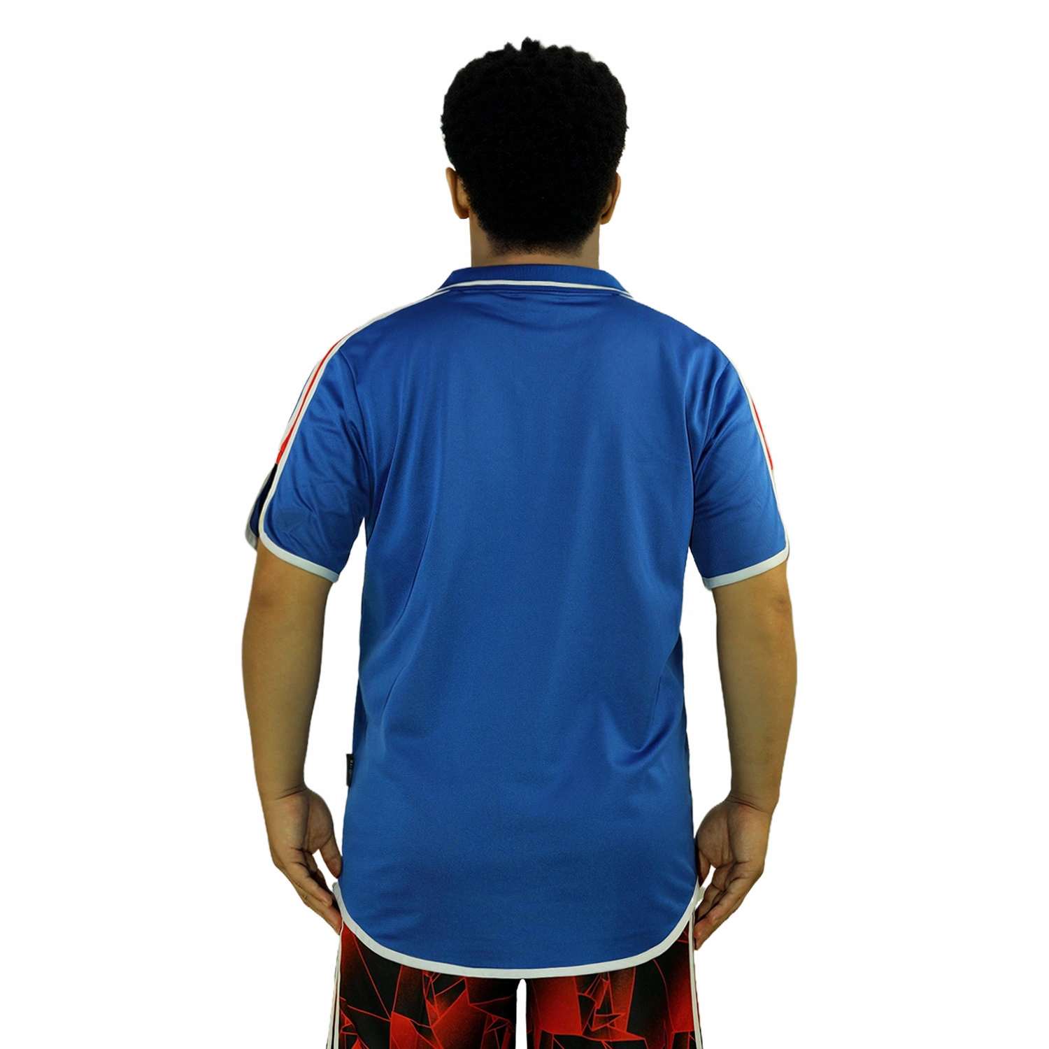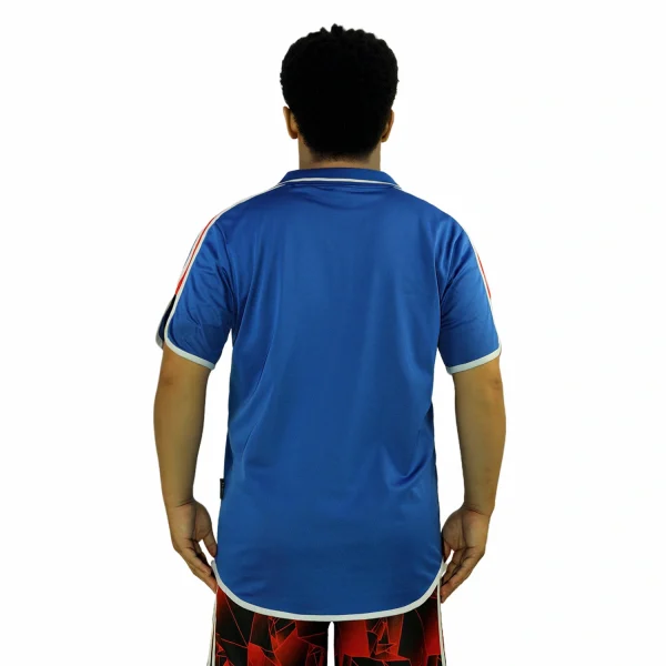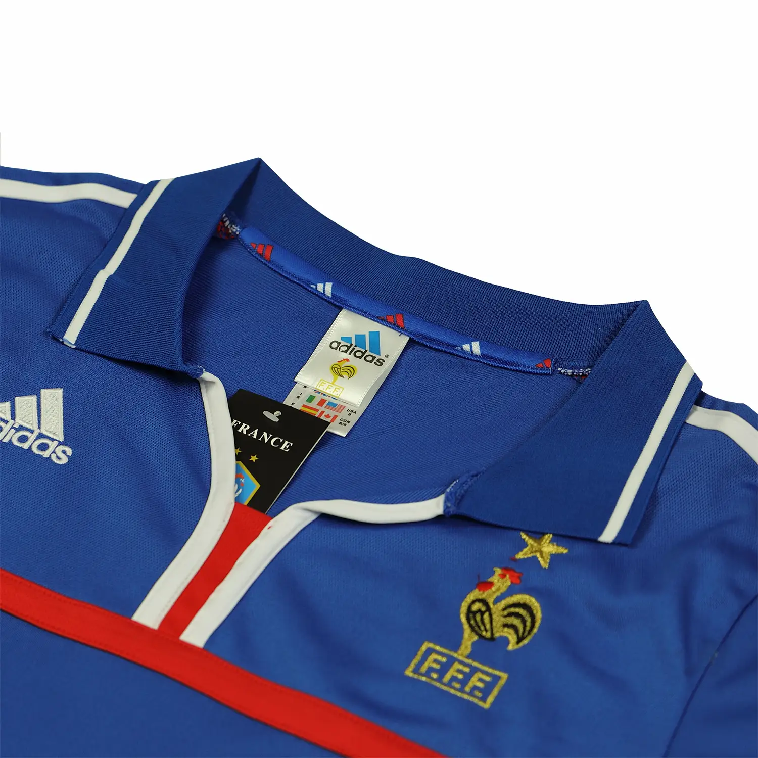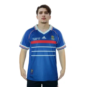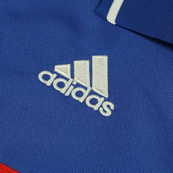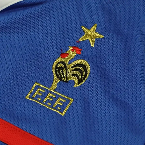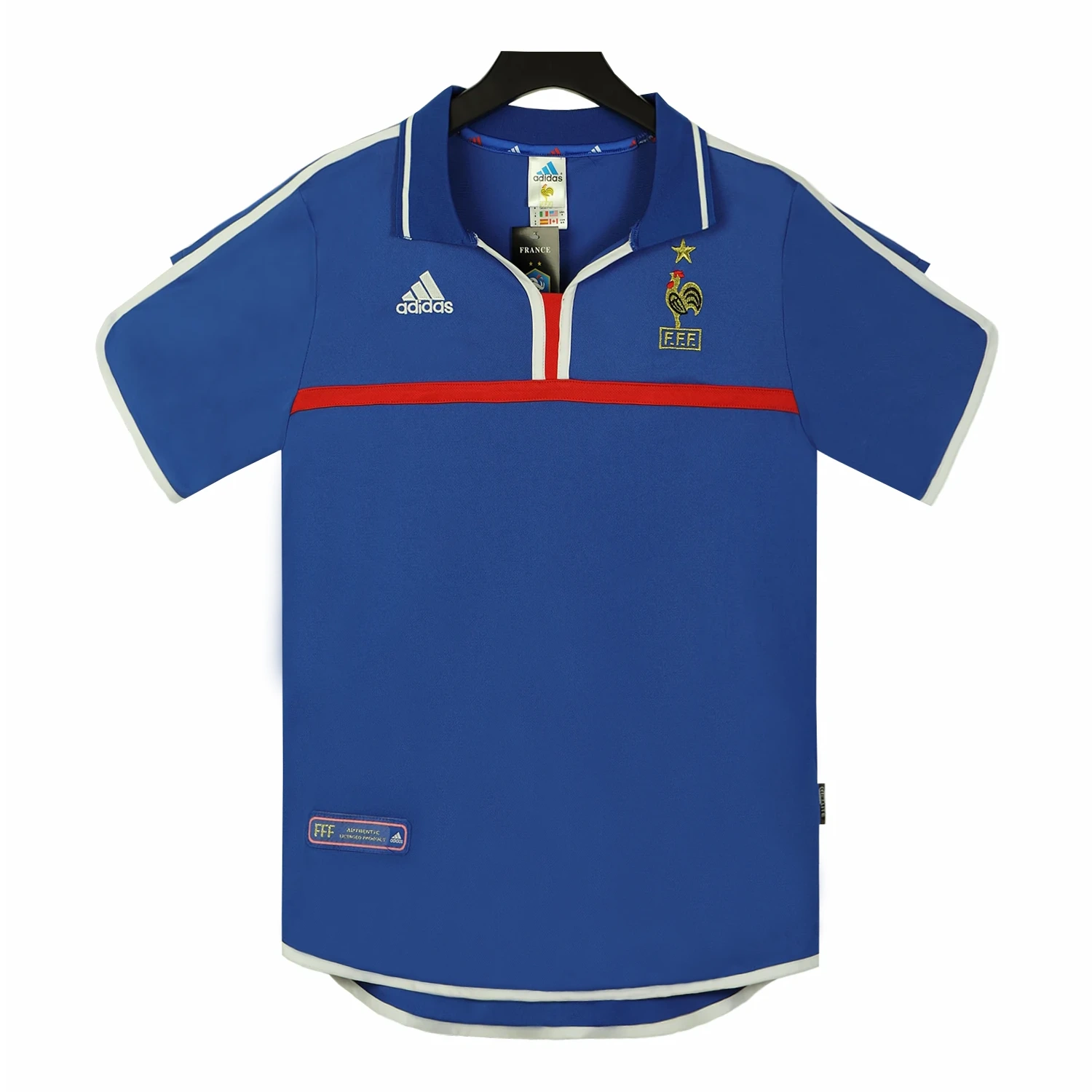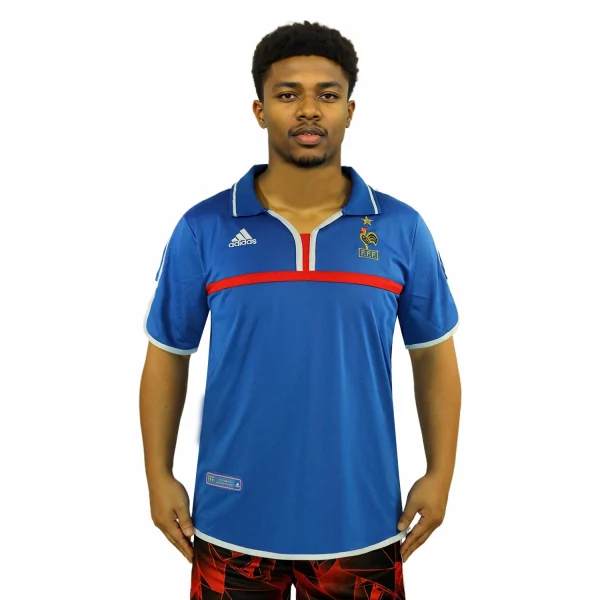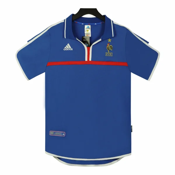 The France 2000 home shirt is a classic and iconic piece of football history, designed by Adidas. This jersey is celebrated for its role in one of the most successful periods in French football, particularly during the UEFA Euro 2000, where France triumphed as champions.