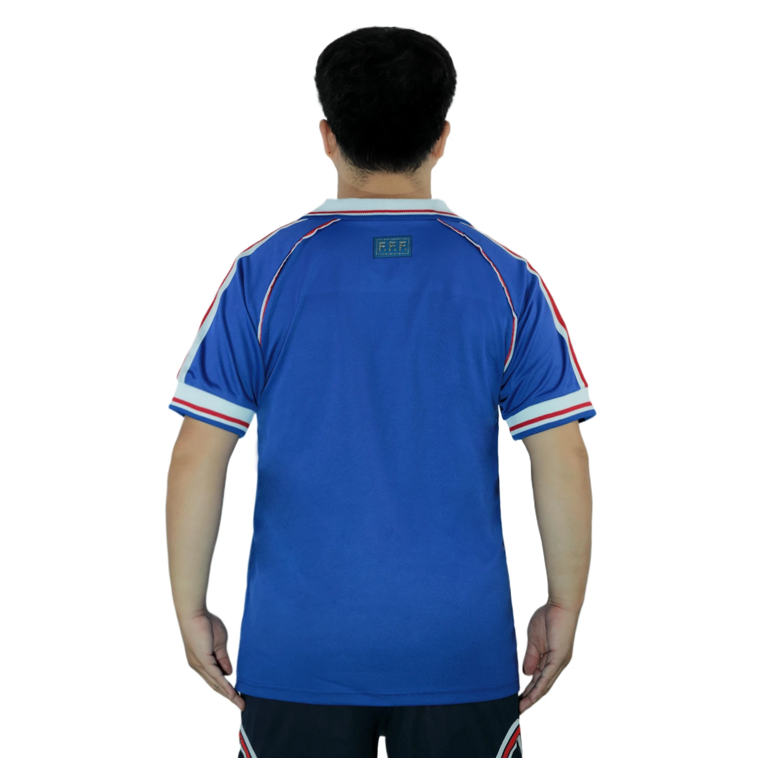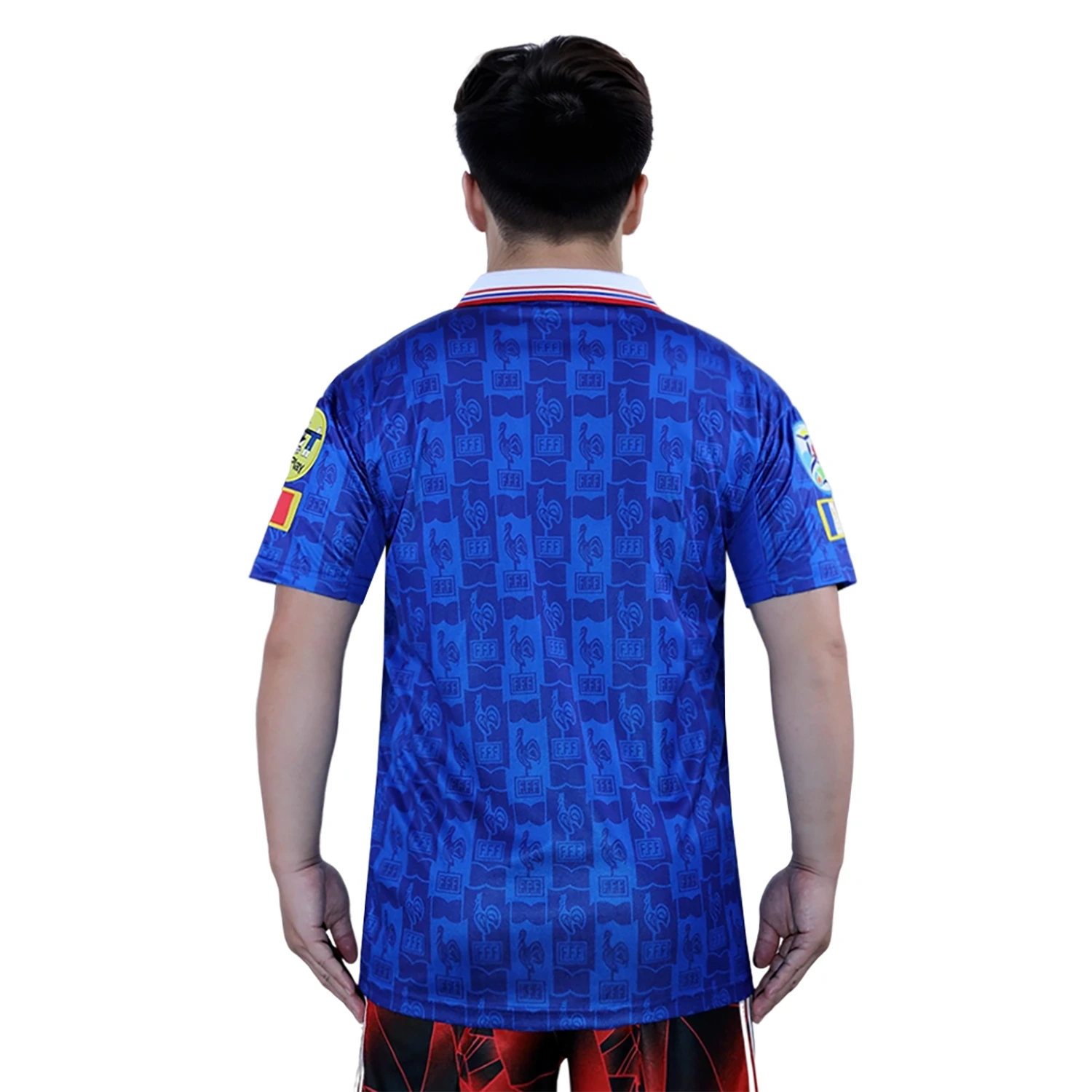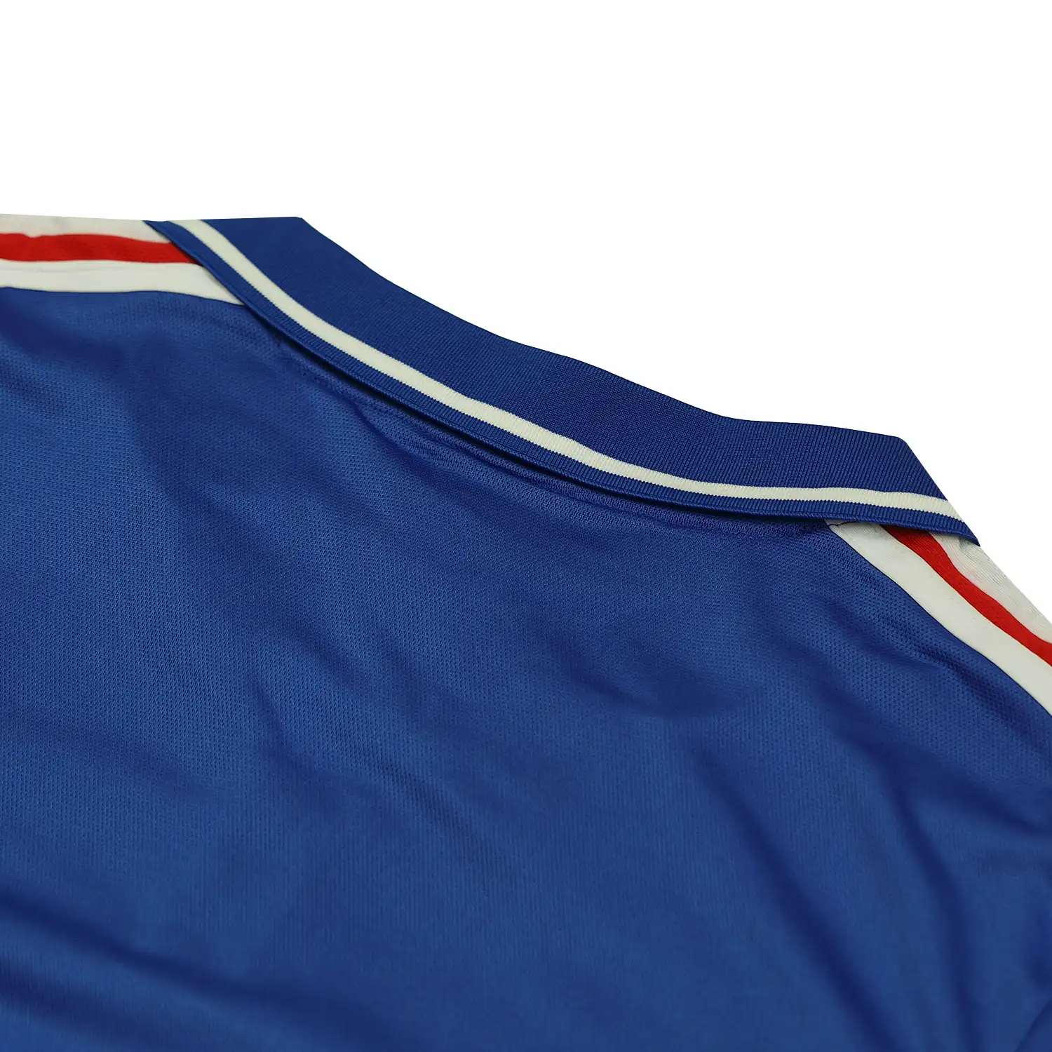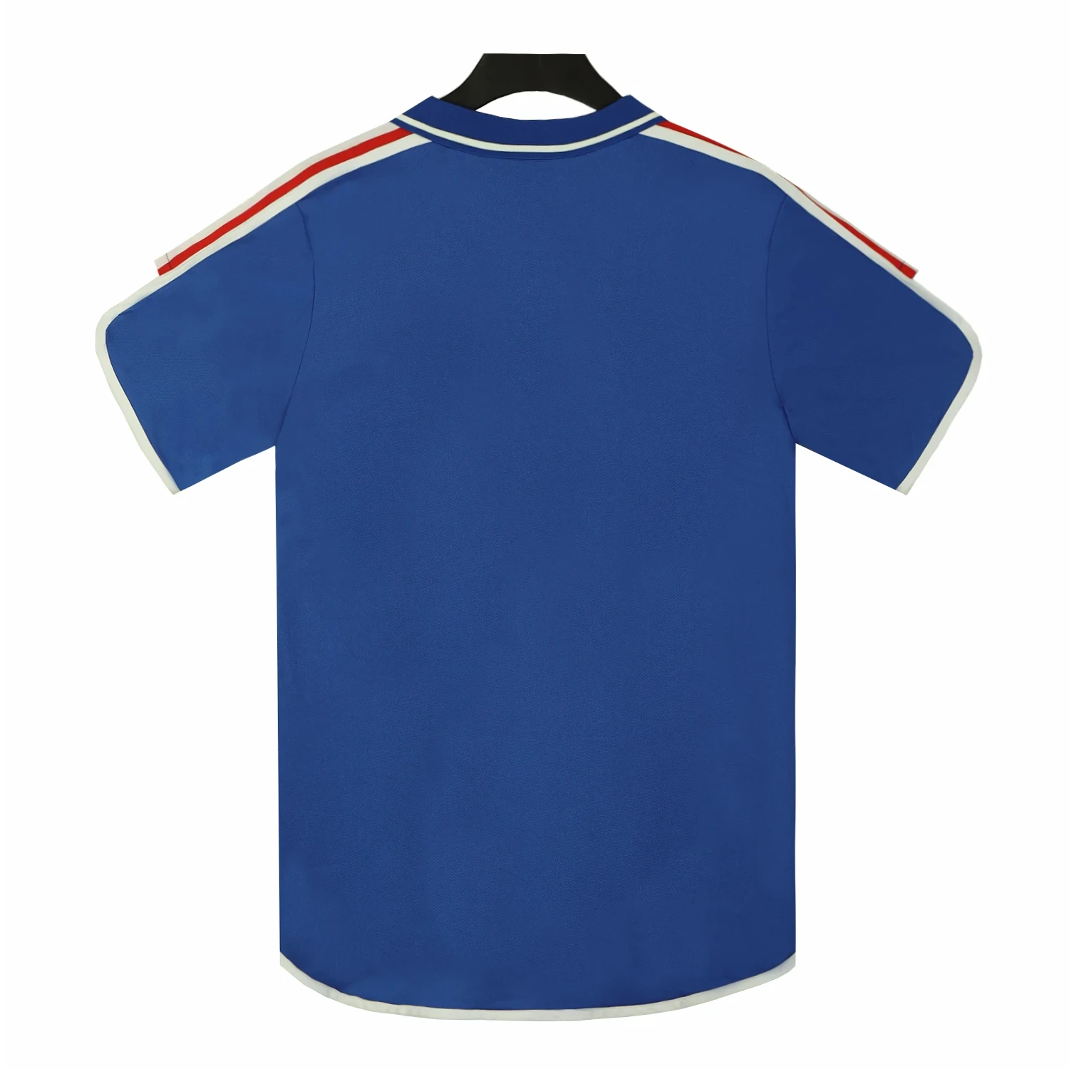 The France 2000 home shirt is a classic and iconic piece of football history, designed by Adidas. This jersey is celebrated for its role in one of the most successful periods in French football, particularly during the UEFA Euro 2000, where France triumphed as champions.