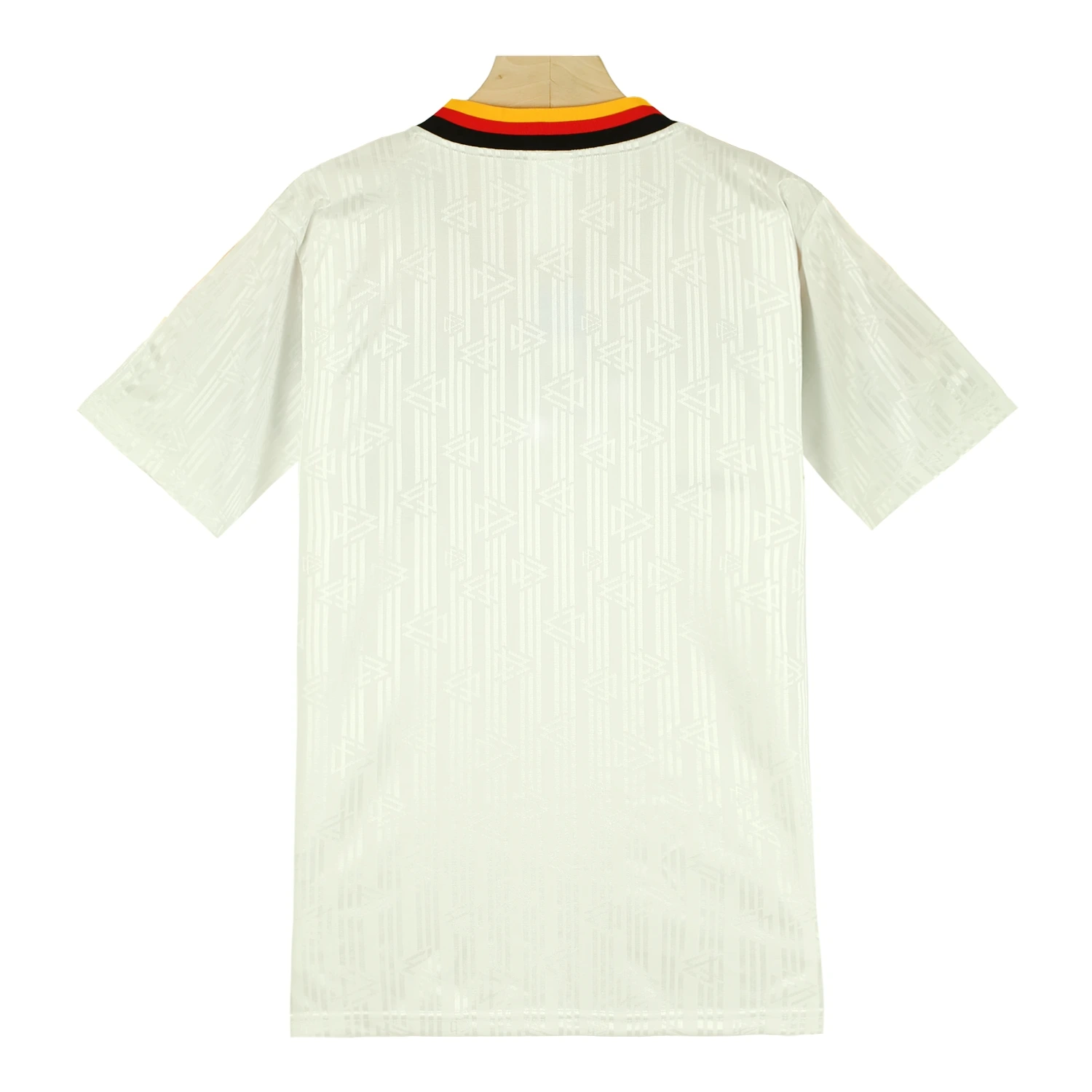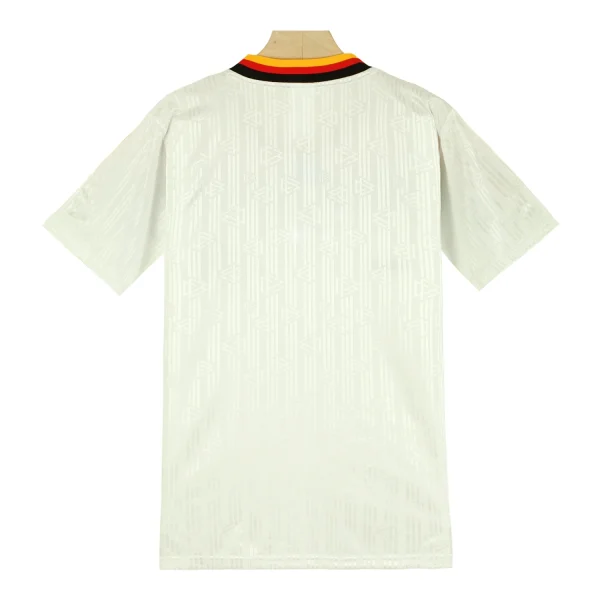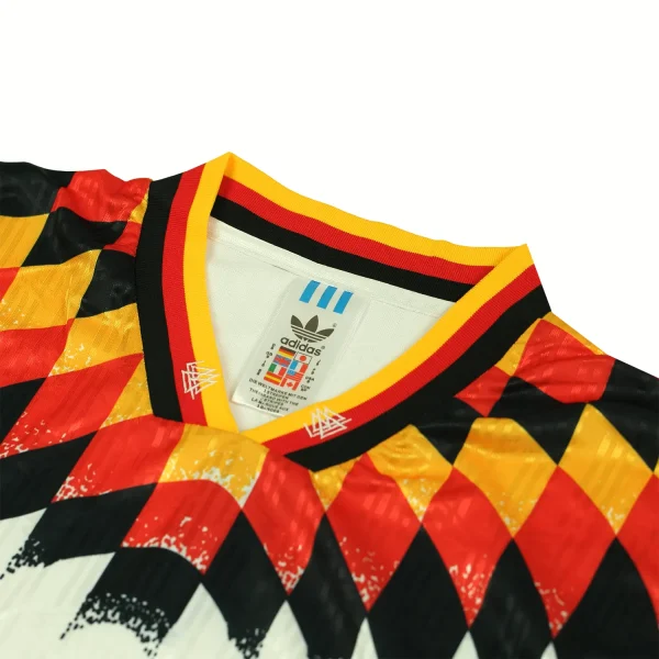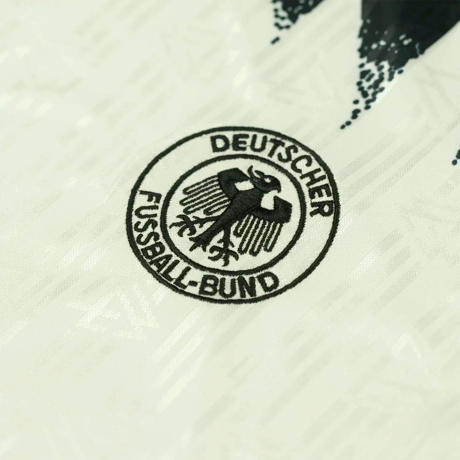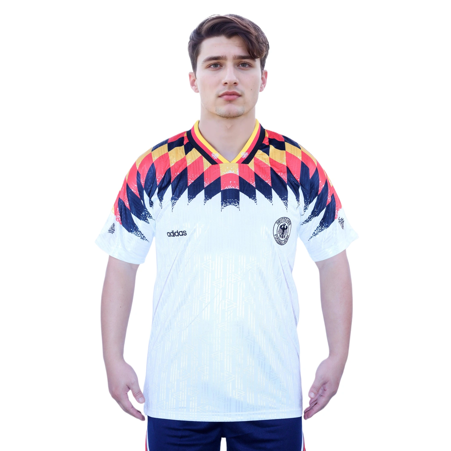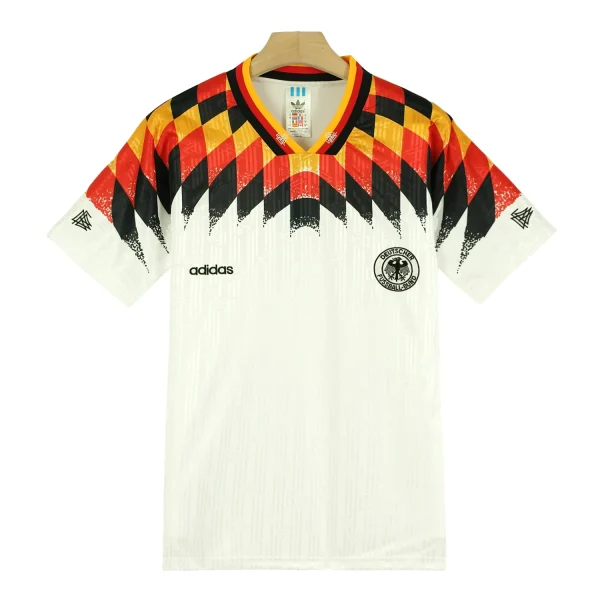 The Germany 1994 home shirt is a distinctive and memorable piece of football apparel, celebrated for its bold design and association with Germany’s participation in the 1994 FIFA World Cup held in the United States. Designed by adidas, this shirt combines traditional elements with a striking, innovative aesthetic.