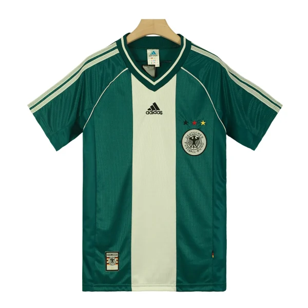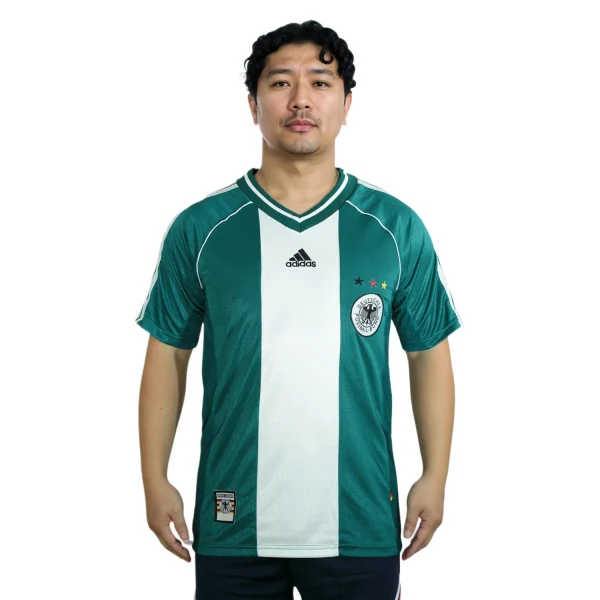 The Germany 1998 away shirt is a memorable piece of football history, symbolizing the style and spirit of the German national team during the 1998 FIFA World Cup. Crafted by Adidas, this shirt stands out for its distinctive design and bold color scheme.