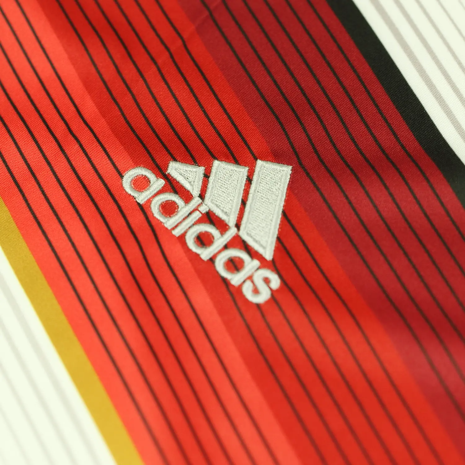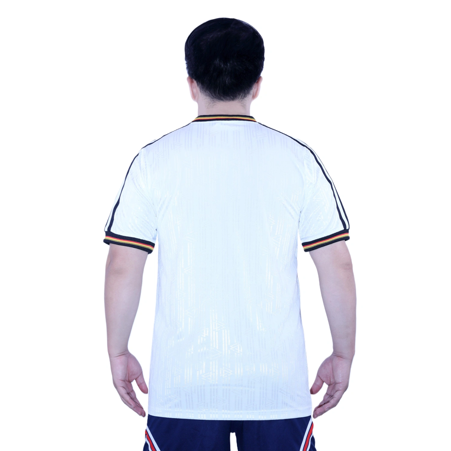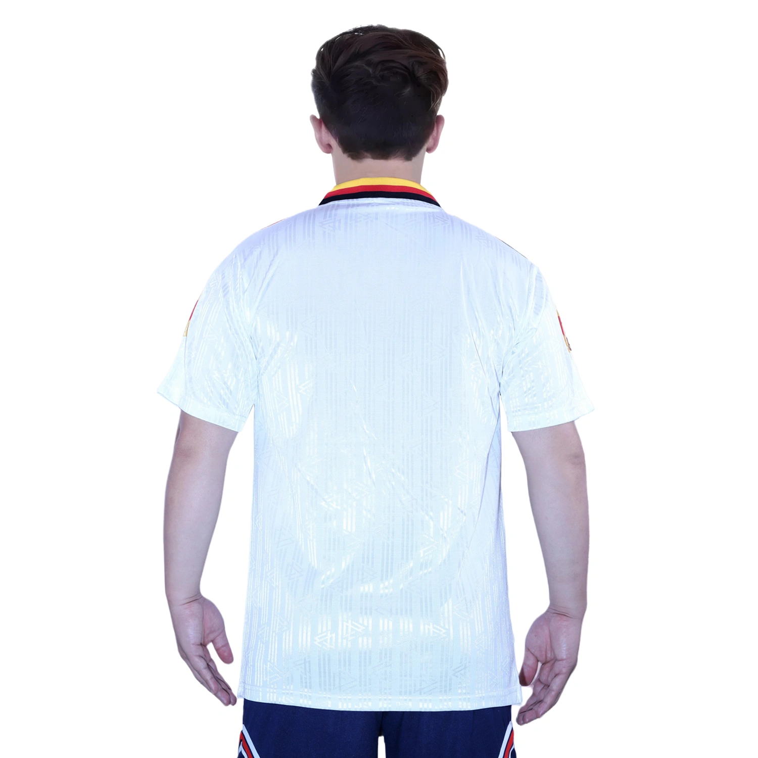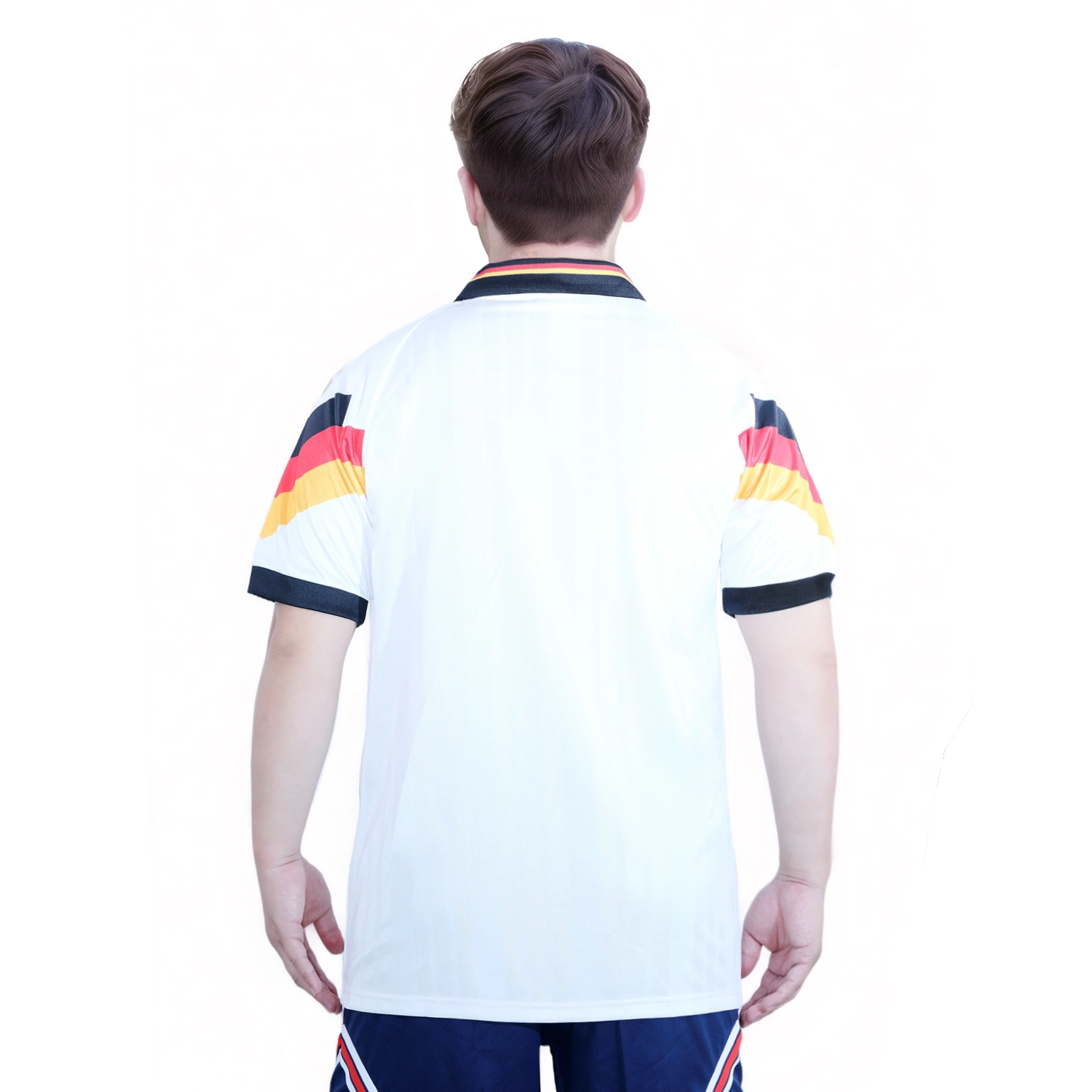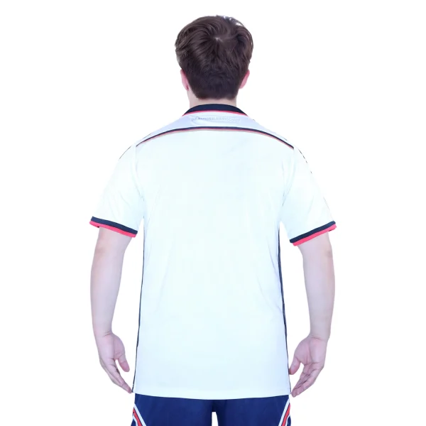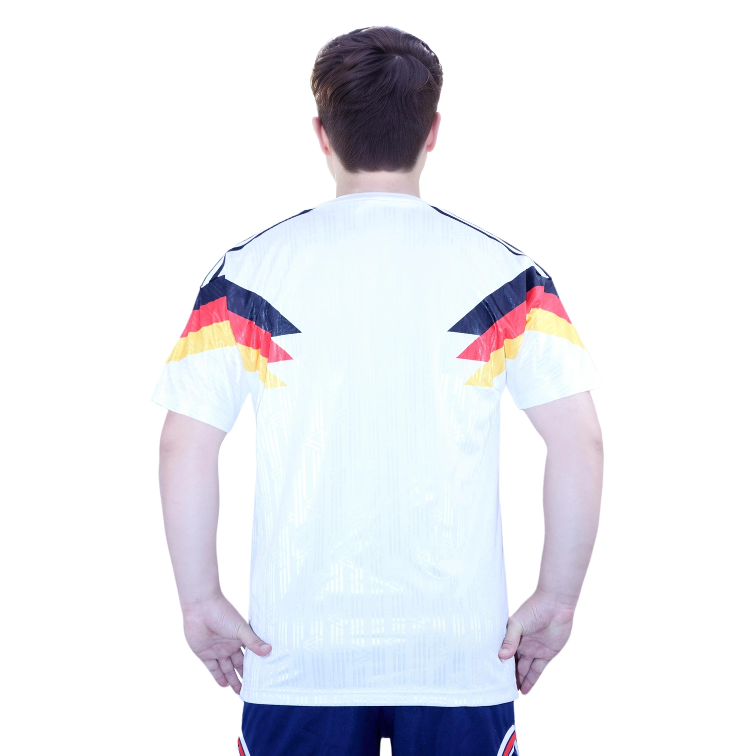 During the 2014 FIFA World Cup, the Germany national football team’s home jersey stood out for its simple yet classic design. Created by Adidas, the jersey features a predominantly white base with black, red, and gold accents, reflecting the colors of the German flag.