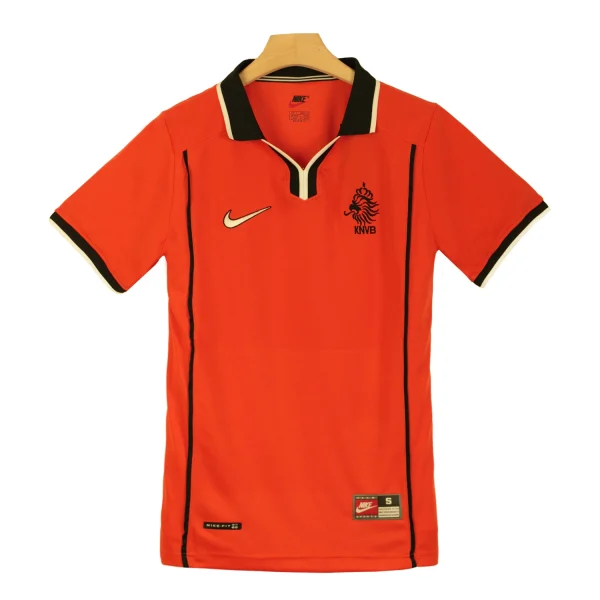 The Holland 1998 World Cup home shirt is a cherished piece of football history, celebrated for its classic design and association with the Dutch national team’s memorable performance in the 1998 FIFA World Cup held in France. Designed by Nike, this shirt encapsulates the vibrant spirit and rich heritage of Dutch football.