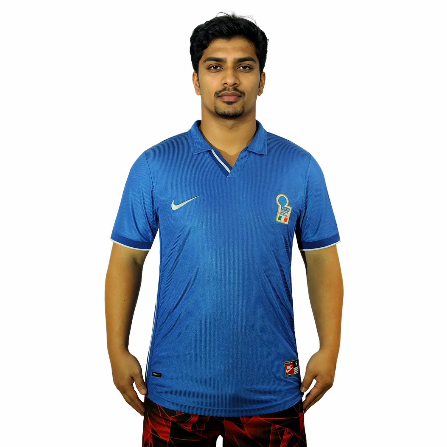 Italy had high hopes going into the 1998 World Cup. The team managed to get past the group stage by defeating Chile, Austria, and Cameroon to top Group B. They advanced to the quarter-finals but were knocked out by France in a penalty shootout. This shirt represents a significant period in Italian football history.