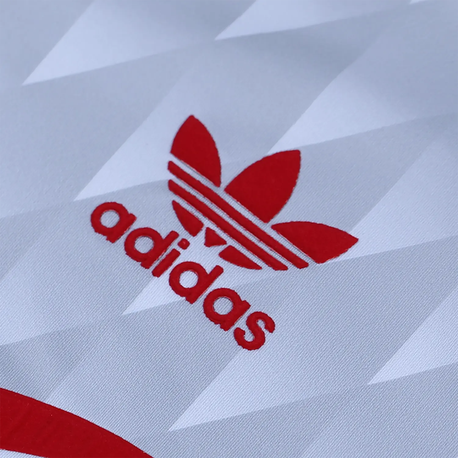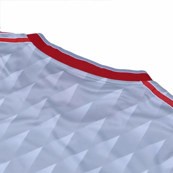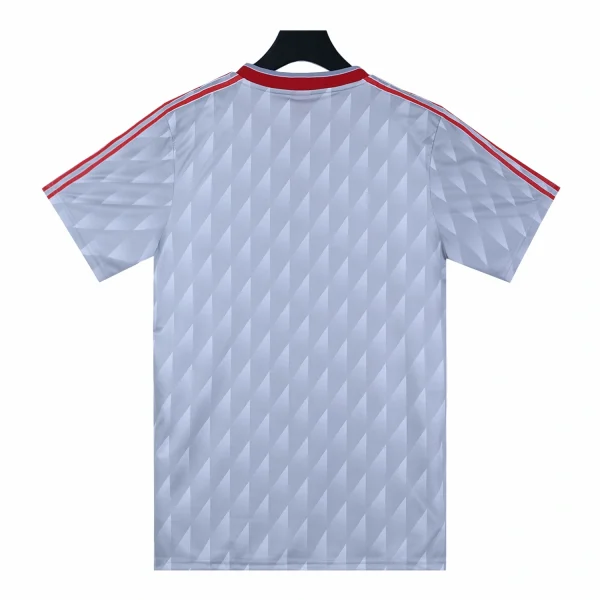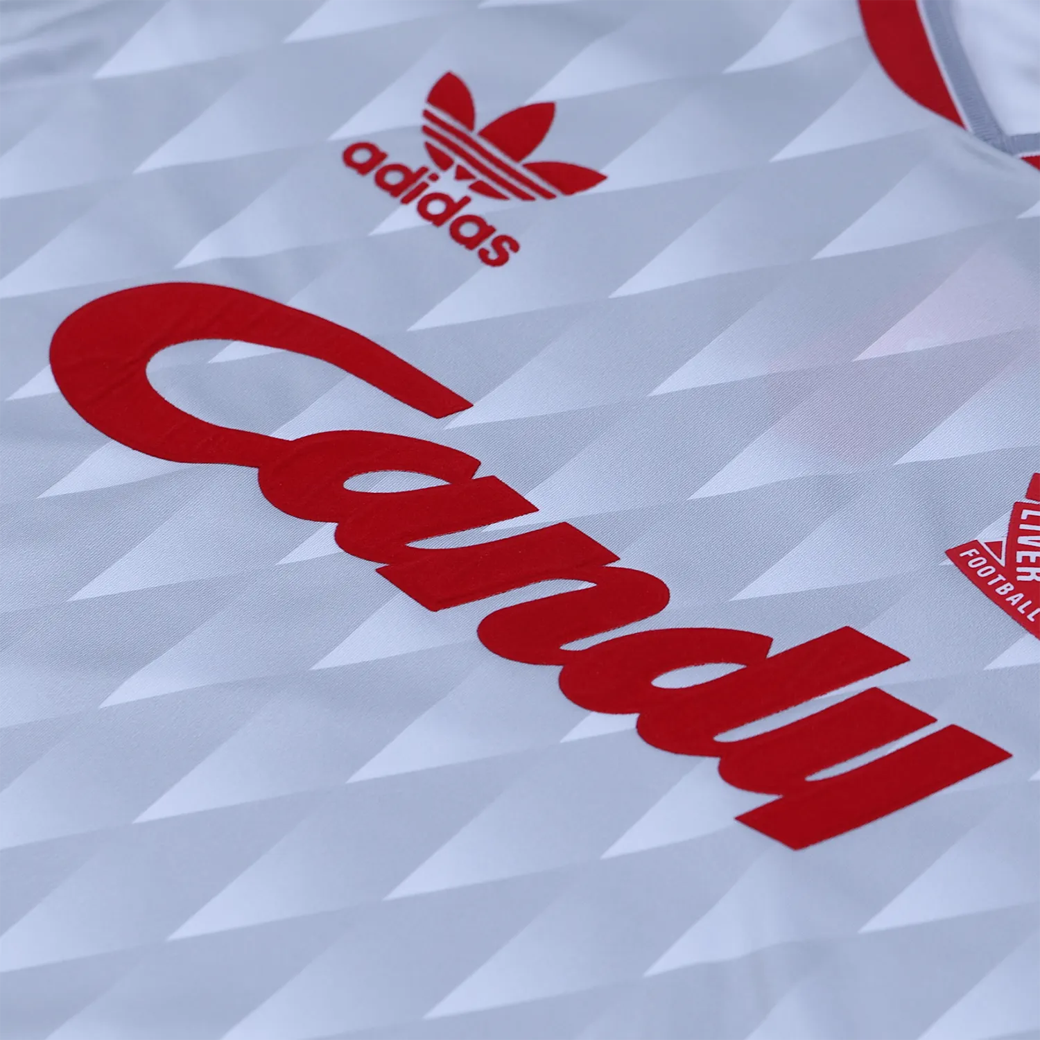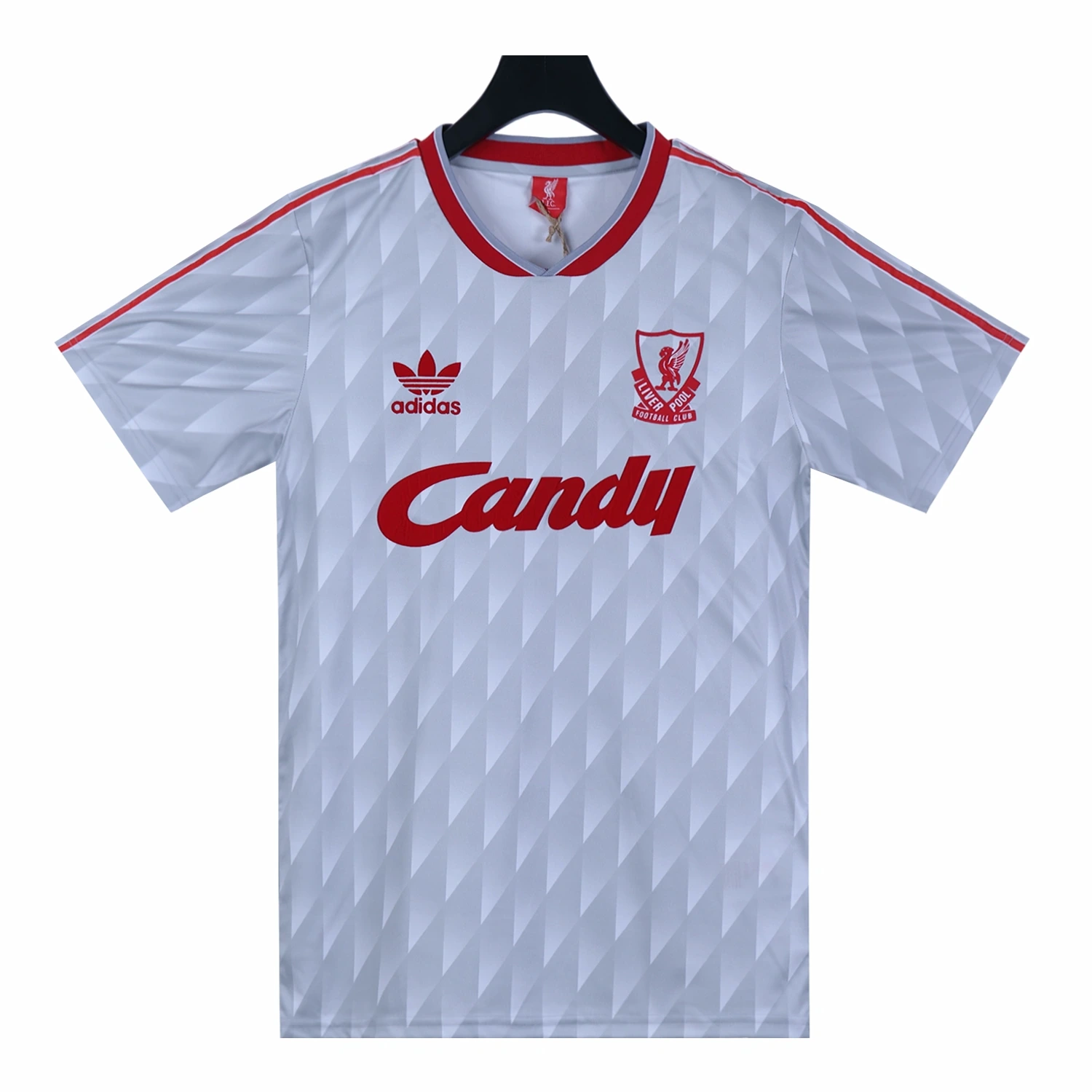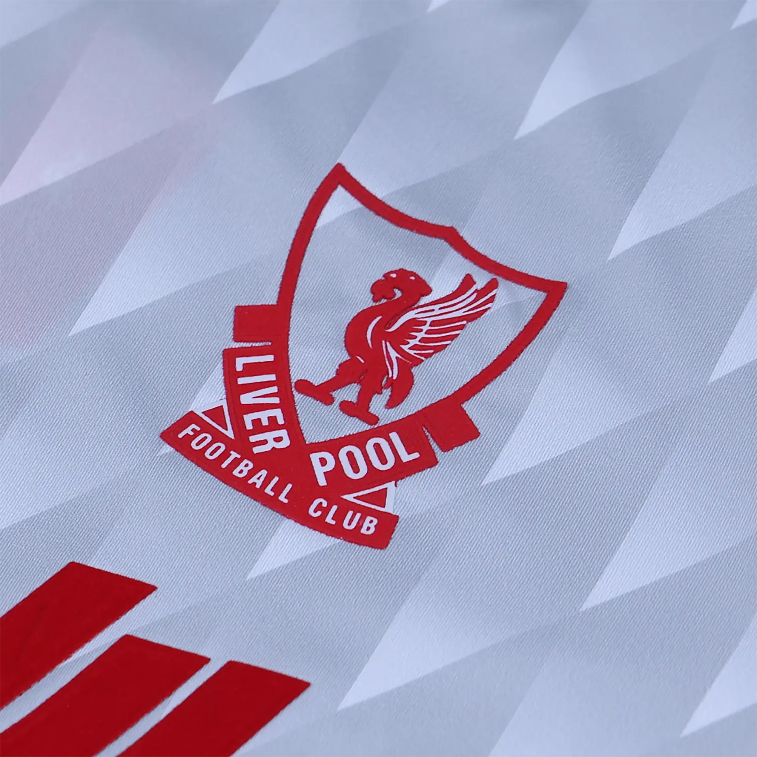 The Liverpool 1989-91 away shirt is a classic piece of football history, famously worn by club legends like Ian Rush, John Barnes, and John Aldridge. This iconic jersey features a unique design, and a distinctive geometric pattern on the front.
