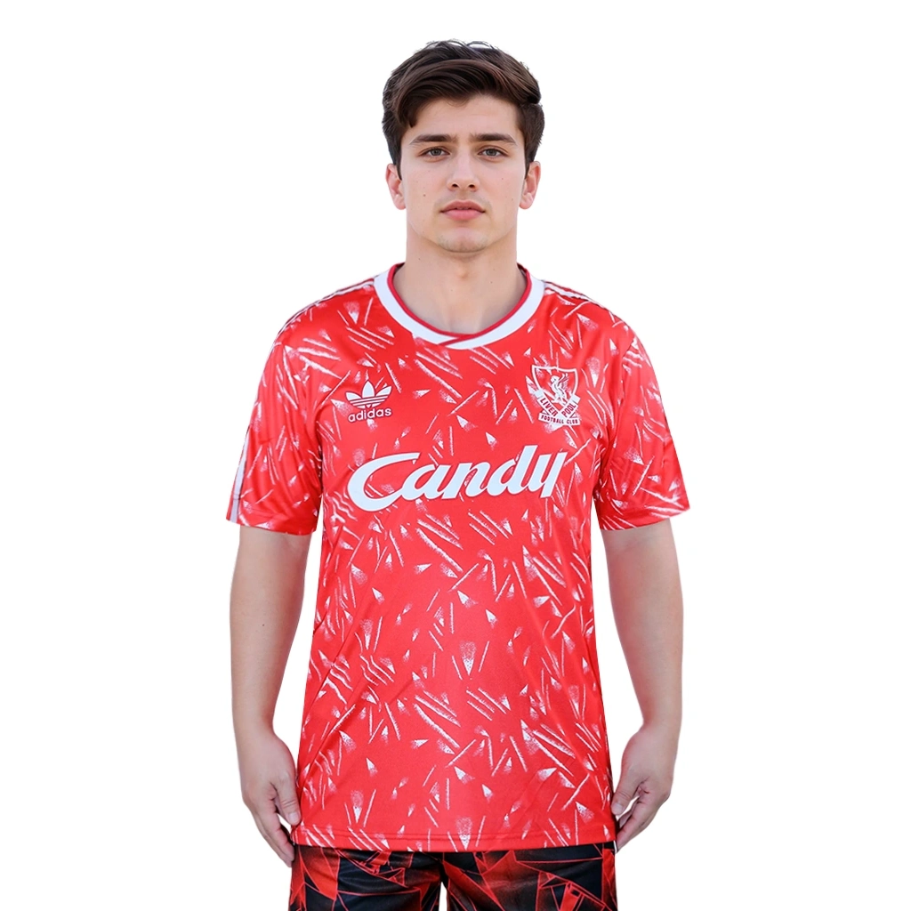 The design of the shirt is often referred to as the ‘Candy’ shirt, named after the sponsor that adorned it. This particular kit is celebrated not only for its aesthetic appeal but also for its association with memorable moments in Liverpool’s history, including a remarkable 9-0 victory over Crystal Palace during that season. The shirt symbolizes a golden era for the club, marking the last time they lifted the First Division title before it was rebranded as the Premier League.