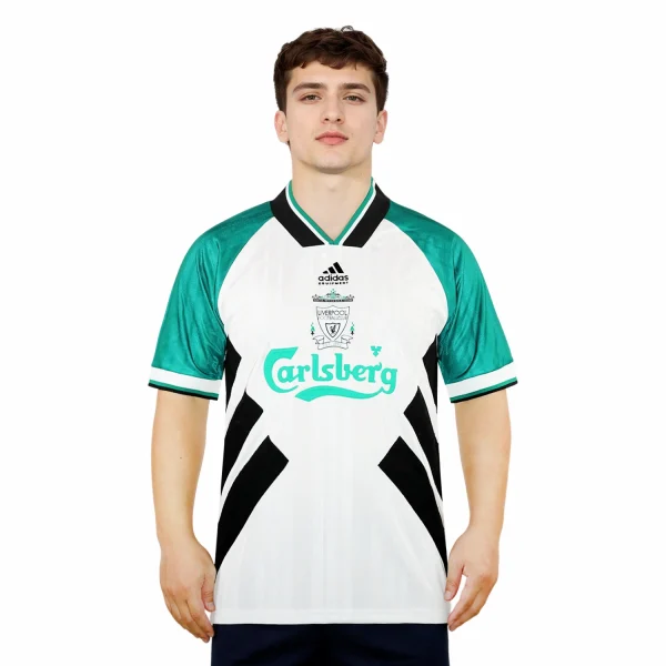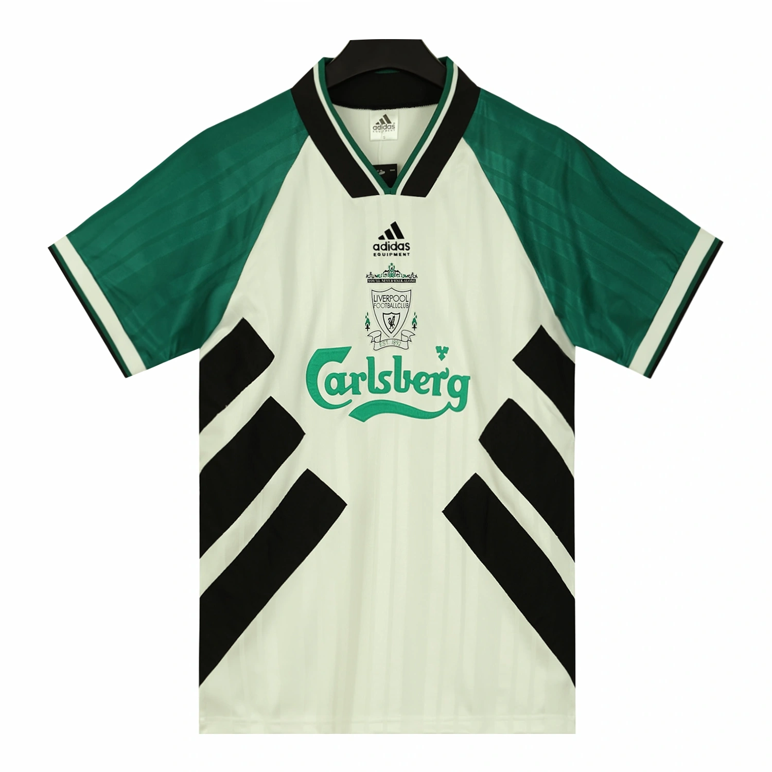 The Liverpool 1993-95 away shirt is a notable piece of football memorabilia, celebrated for its distinctive design and historical significance.