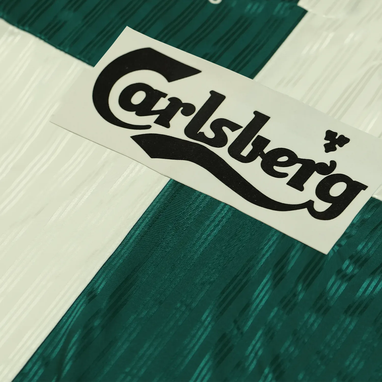 The Carlsberg logo is prominently displayed, as it was the club’s sponsor at the time. The logo is well-integrated into the design, maintaining a balance between branding and aesthetics.