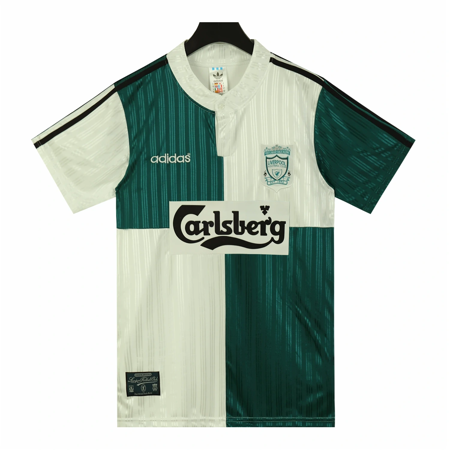 Overall, the Liverpool 1995-96 away shirt is cherished for its bold colors, unique patterns, and historical significance, making it a favorite among fans and collectors alike.