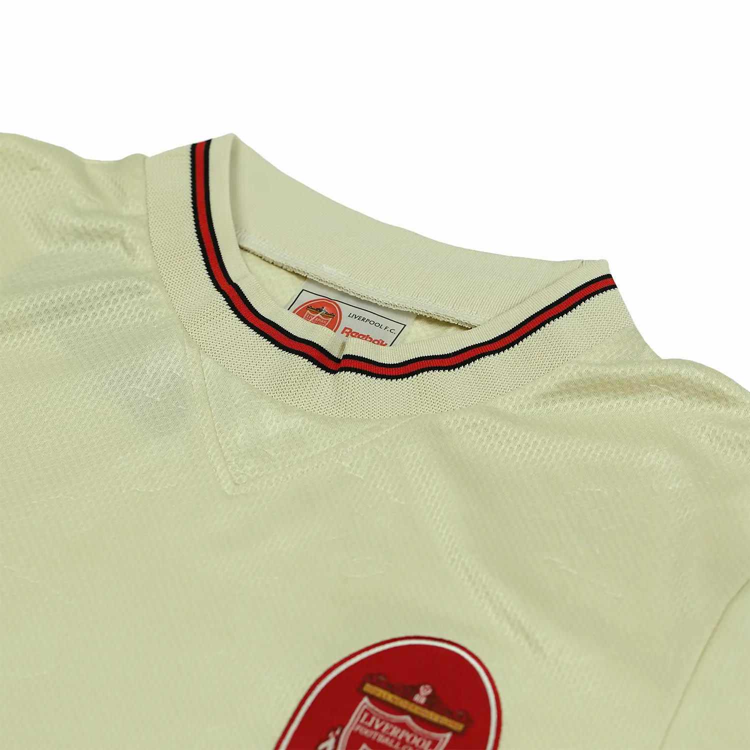 The Liverpool 1996-97 away shirt is a classic piece of football history, worn by legends like Robbie Fowler and Steve McManaman. Designed by Reebok.