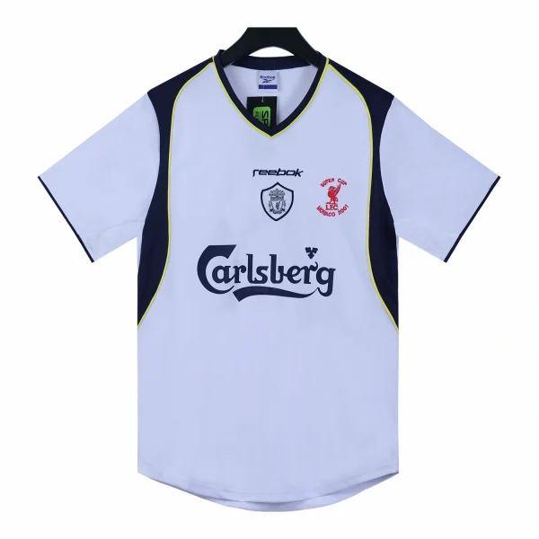The Liverpool 2001-02 super cup away shirt is renowned for its distinctive design and color scheme, reflecting the club’s heritage and style during that era.