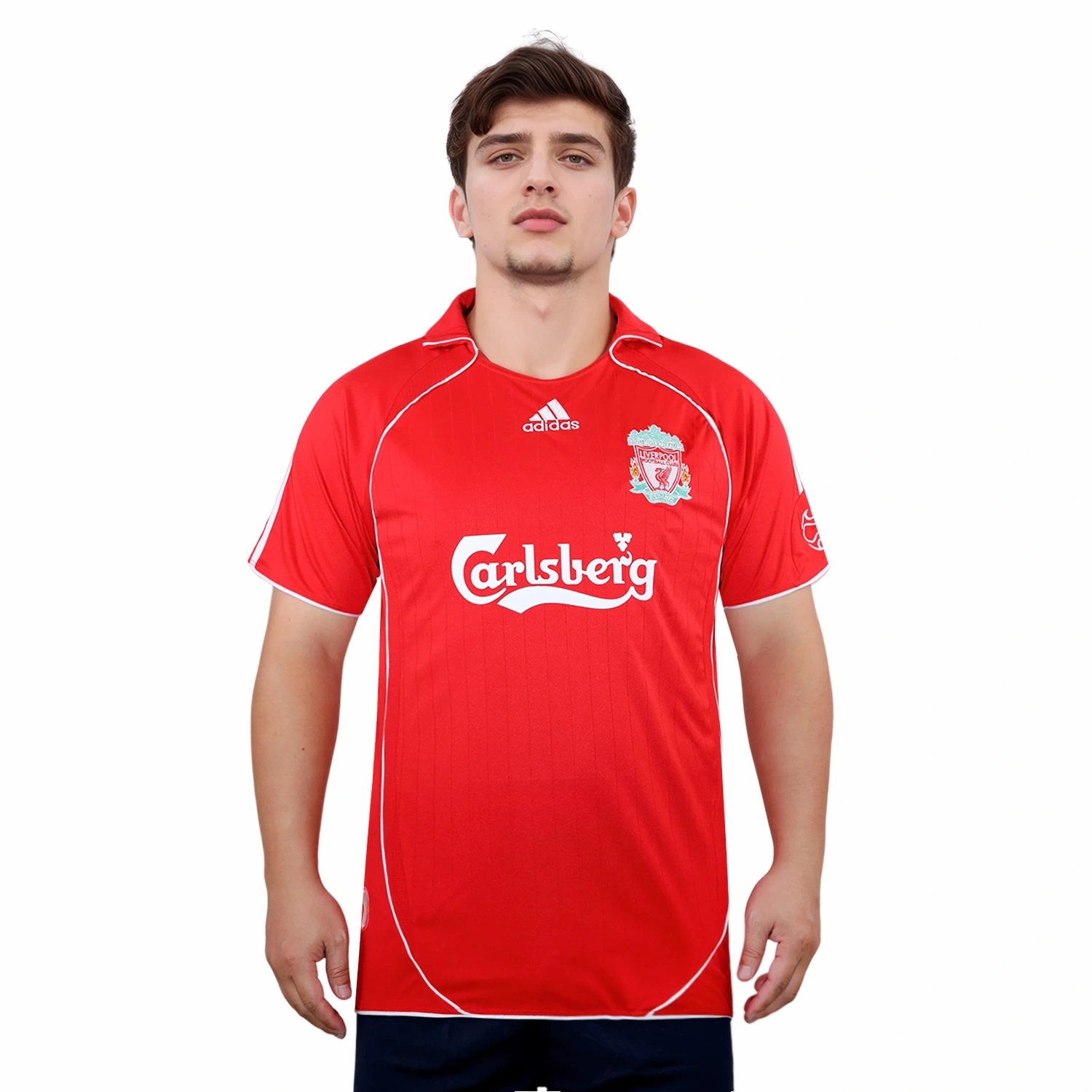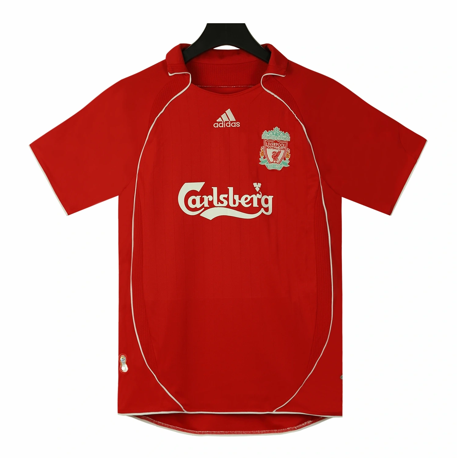The Liverpool 2006-08 home shirt, crafted by Adidas, is a classic piece of football memorabilia. Known for its vibrant red color, it features the iconic Carlsberg sponsor logo and the club’s crest. The shirt is made with ‘ClimaCool’ technology, ensuring comfort and breathability. It was worn during memorable seasons, including the 2007 Champions League final.