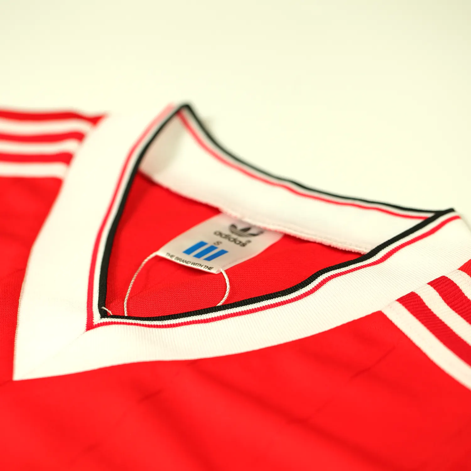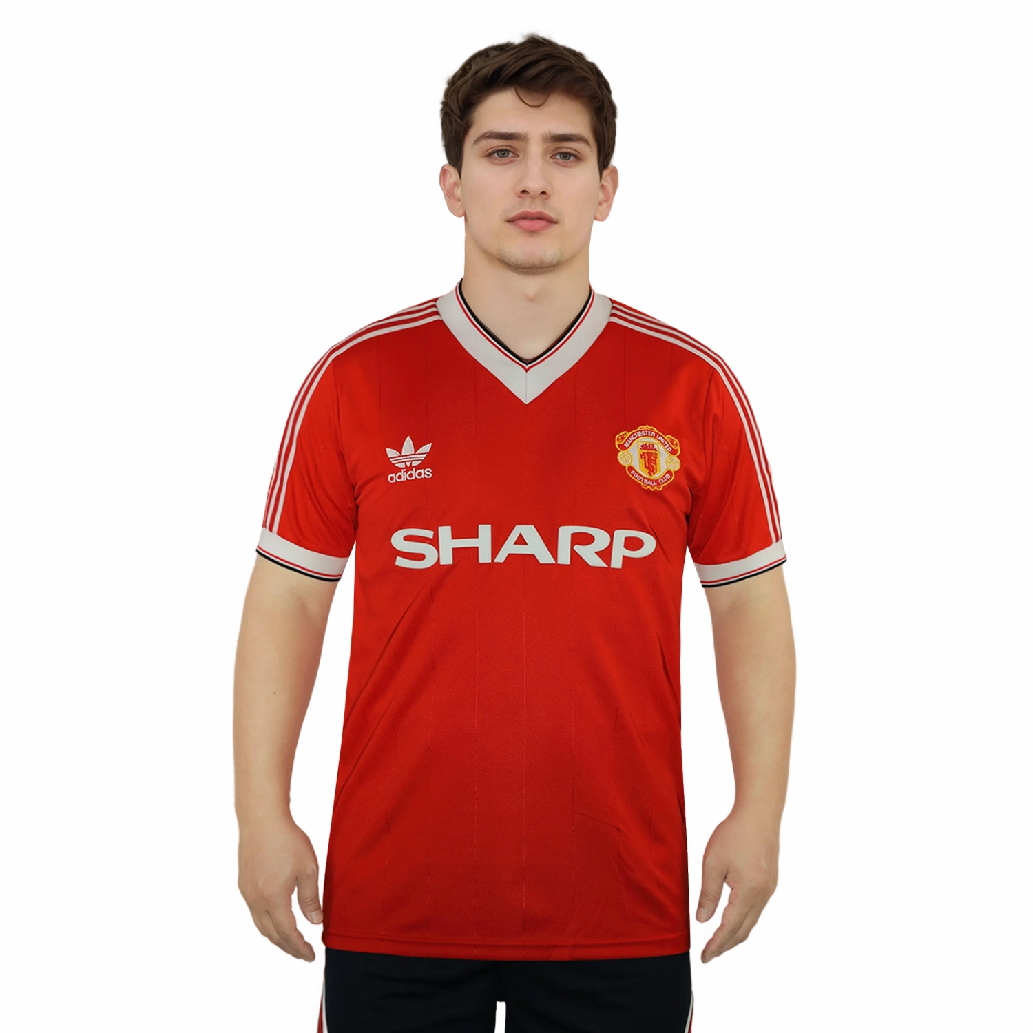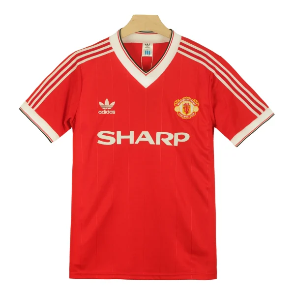 The 1983-84 Manchester United home shirt is a beloved classic, celebrated for its iconic design and historical significance. Manufactured by Adidas, the shirt featured the club’s traditional red color, symbolizing the Red Devils’ fierce spirit and storied heritage.