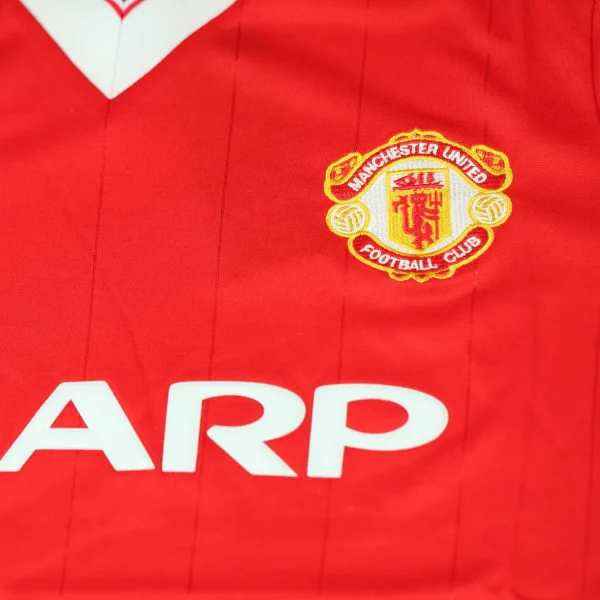 Crafted from durable materials, the 1983-84 home shirt was designed to endure the rigors of the game while providing comfort for the players. This shirt witnessed Manchester United’s memorable European campaign, including their thrilling run to the semi-finals of the UEFA Cup Winners’ Cup.