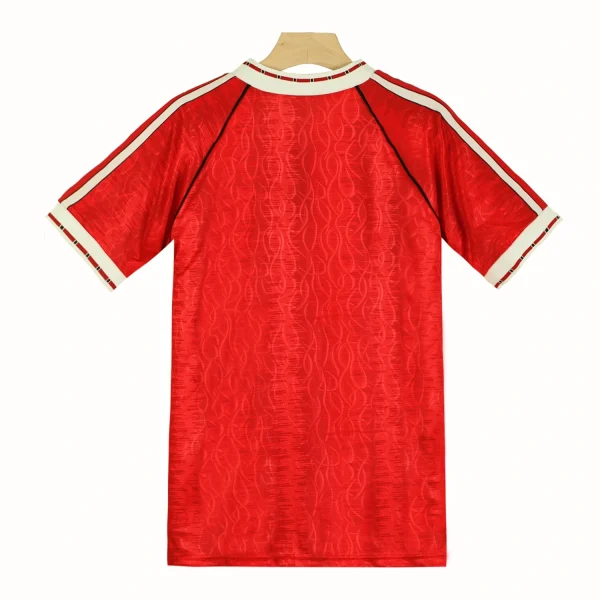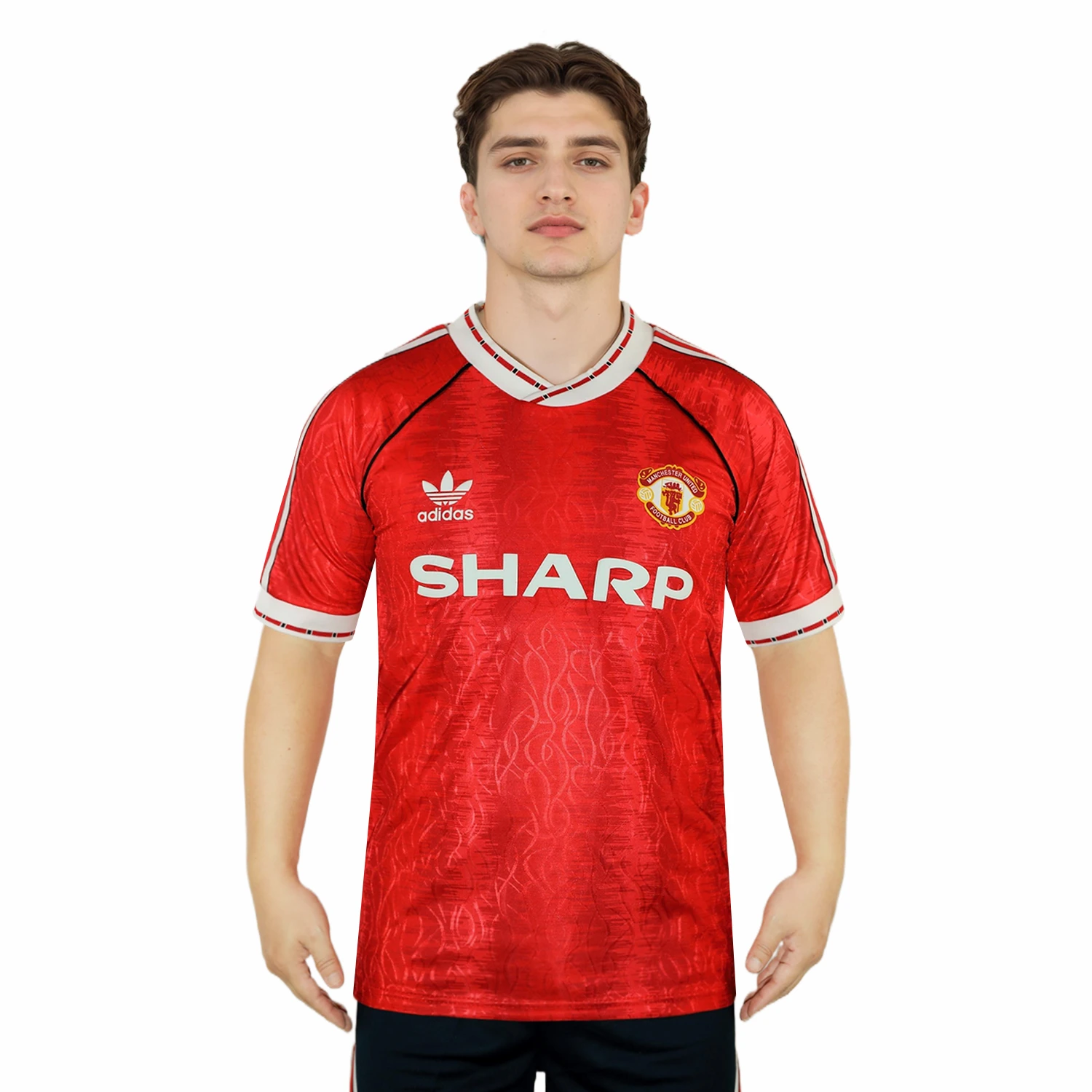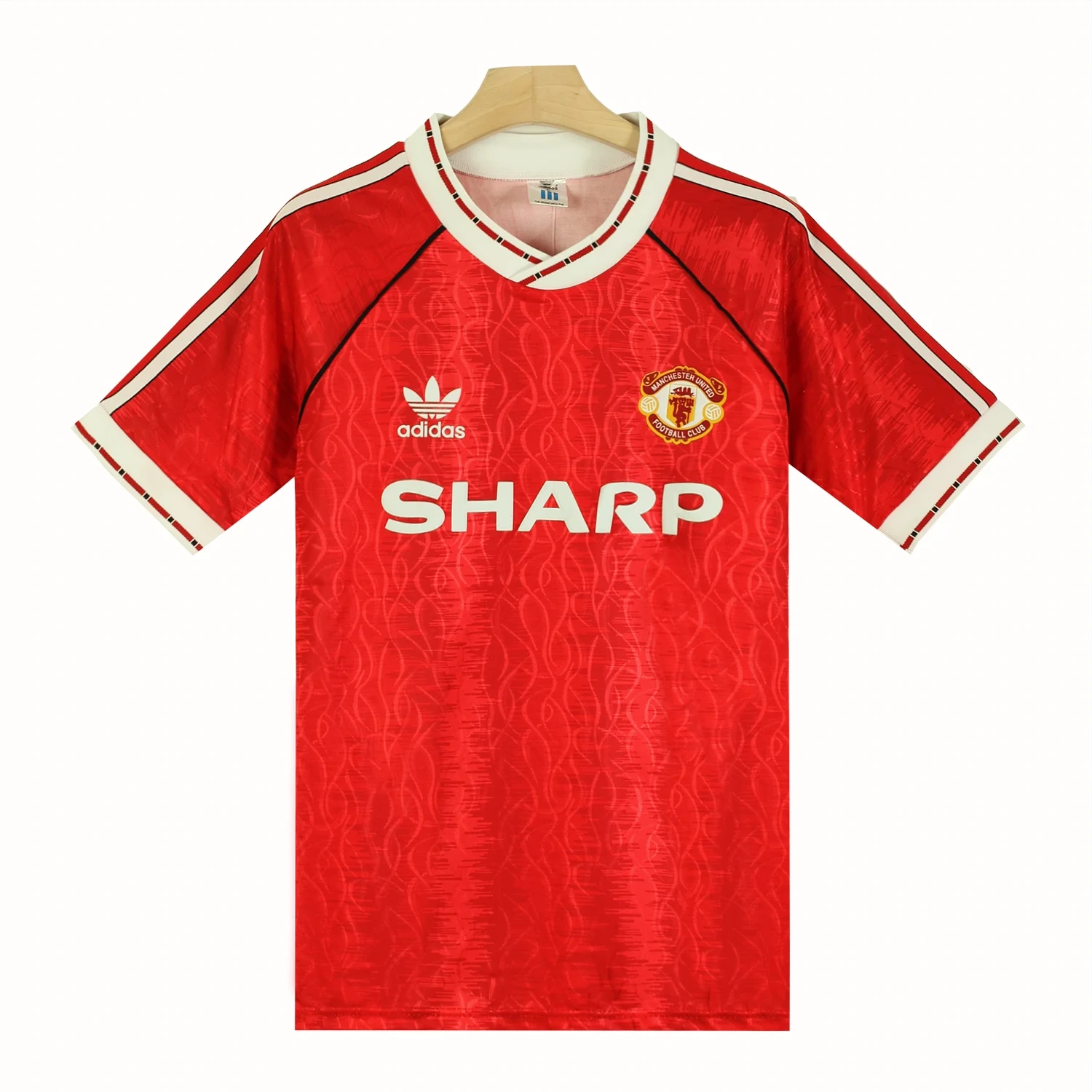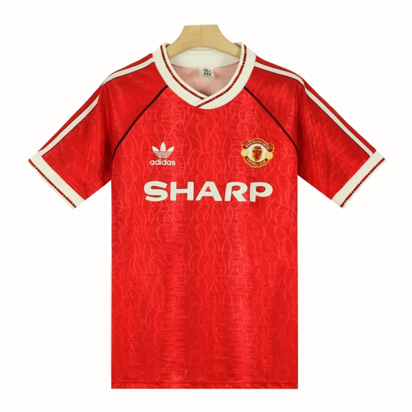 The 1990-91 Manchester United home shirt is a timeless classic, synonymous with a period of resurgence and success for the club under the legendary management of Sir Alex Ferguson. Designed by Umbro, this shirt features a design that is both traditional and striking, capturing the essence of Manchester United’s rich heritage.