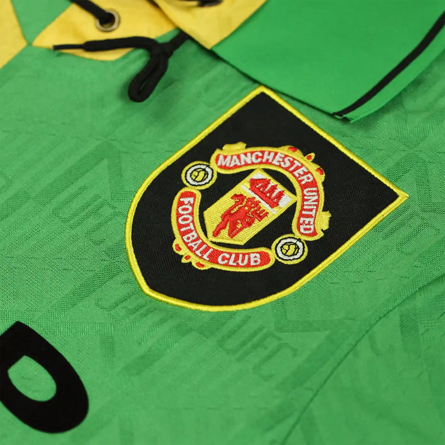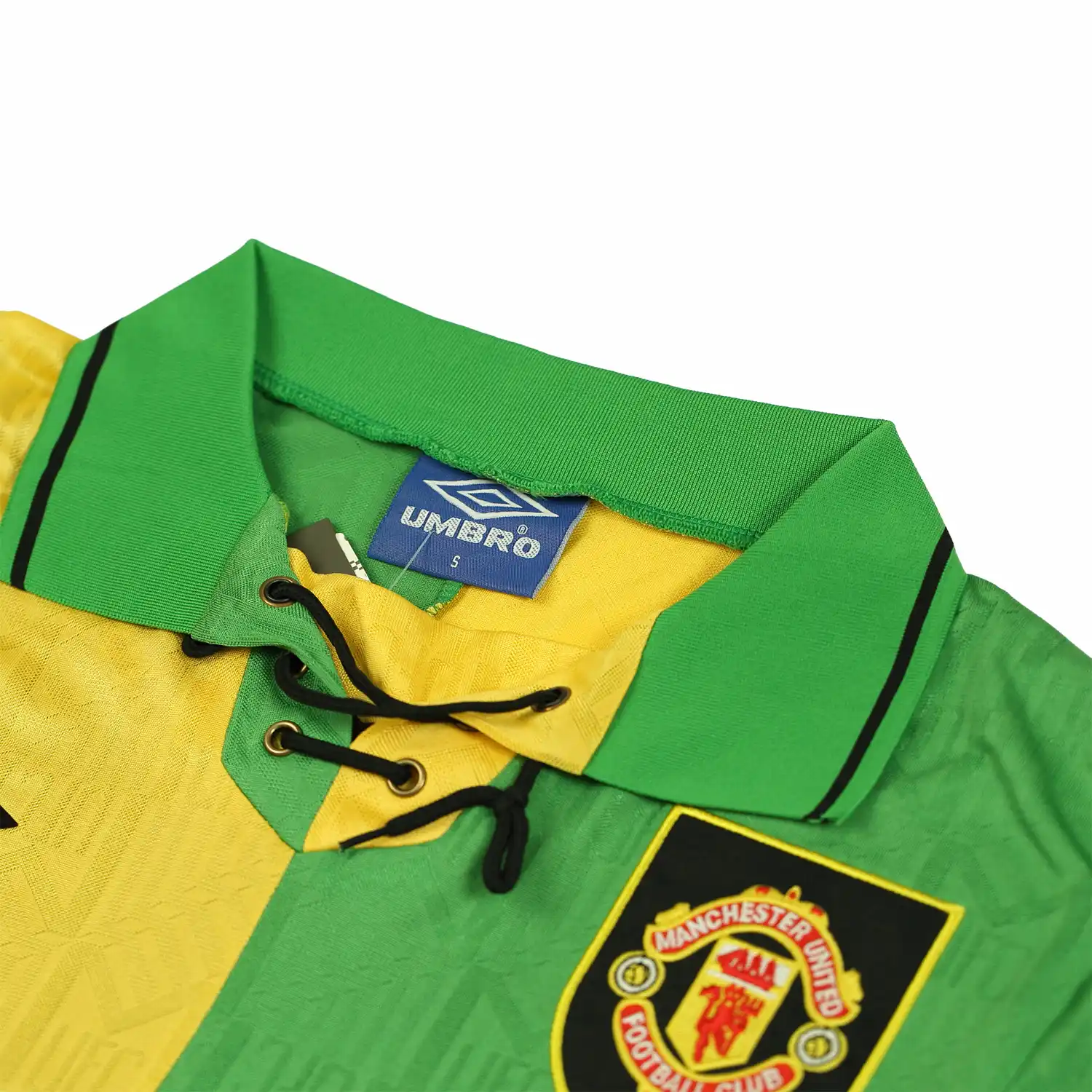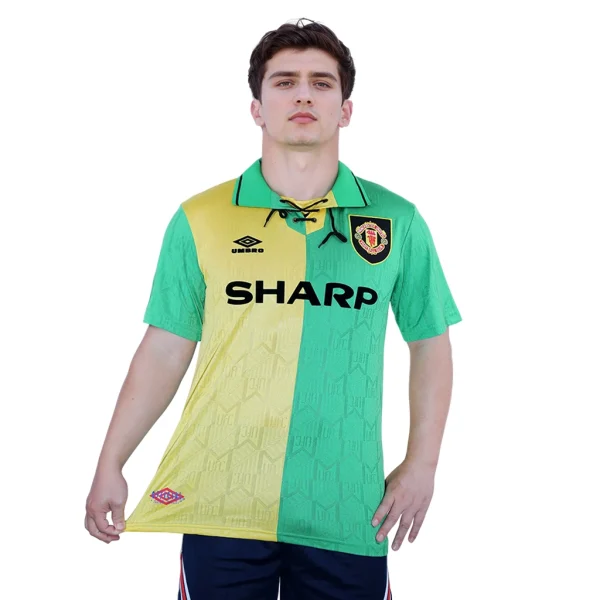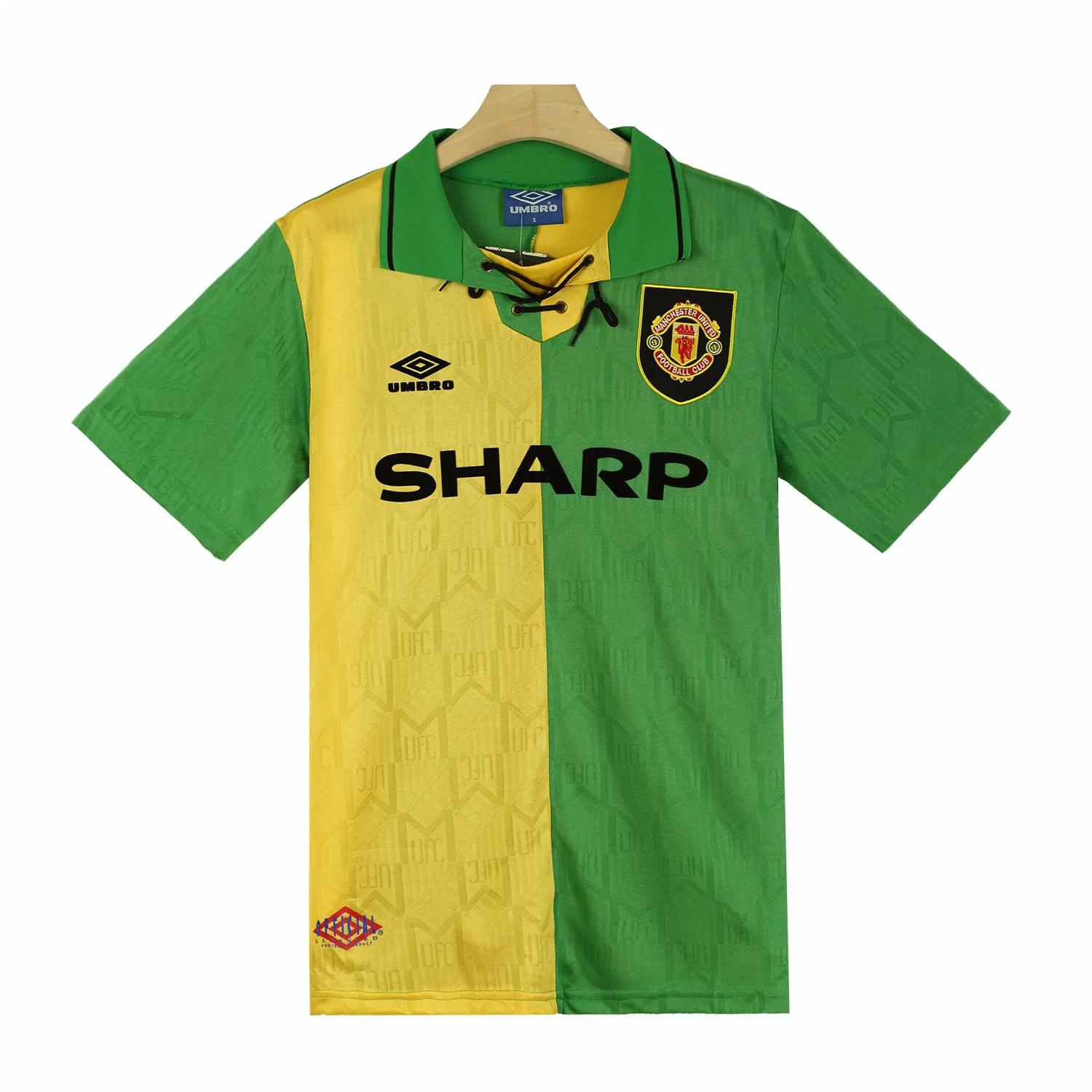 The 1992-94 Manchester United third shirt is a standout piece in the club’s kit history, known for its unique design and significance during a landmark season. Created by Umbro, this shirt diverges from traditional color schemes, offering a fresh and distinctive look that remains iconic among fans.