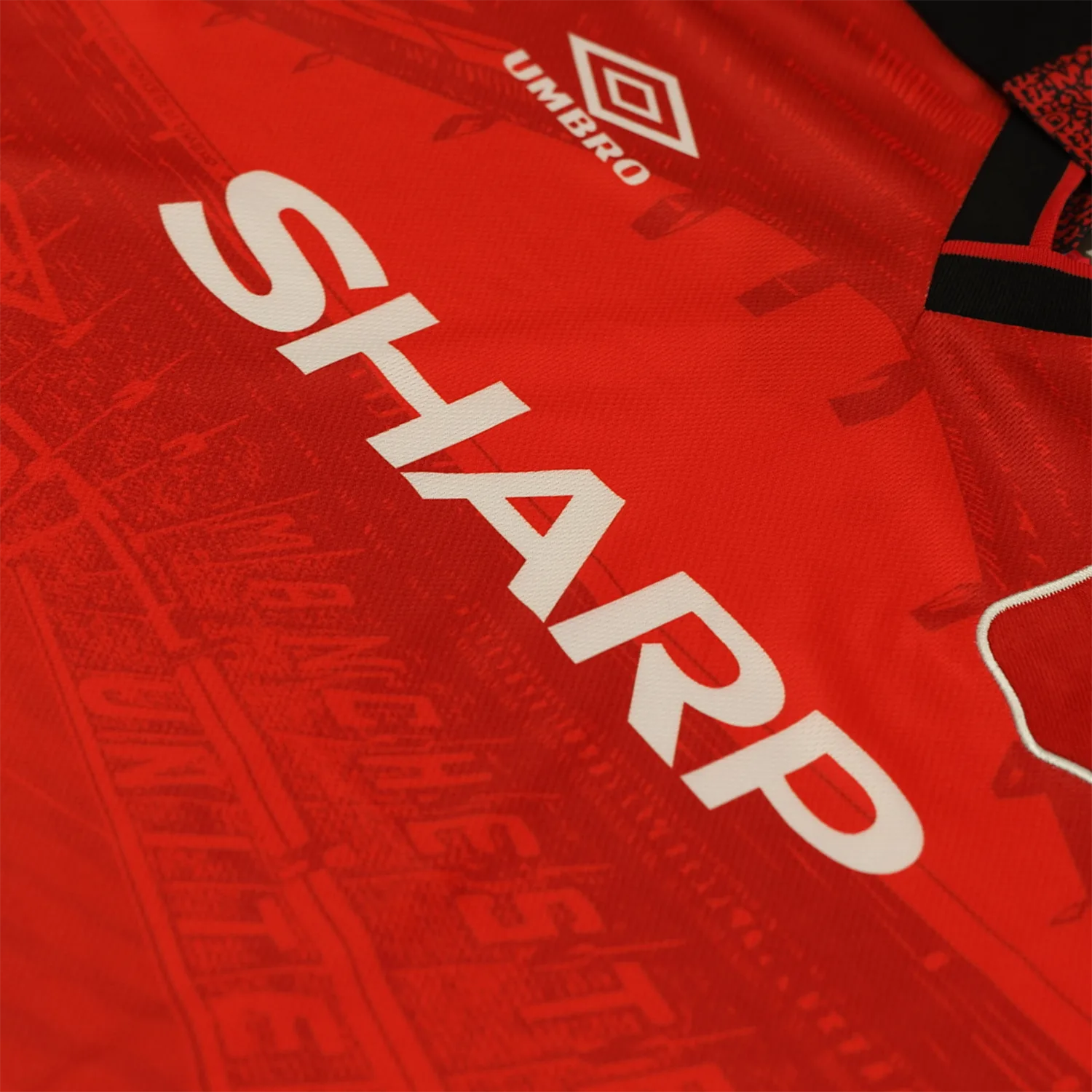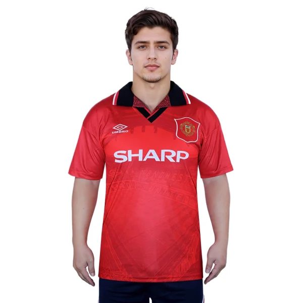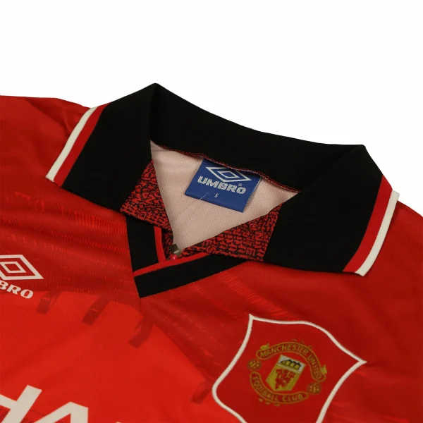 The Manchester United 1994-96 home shirt designed by Umbro, this shirt is renowned for its distinctive style and unique features that capture the essence of Manchester United’s tradition and success.