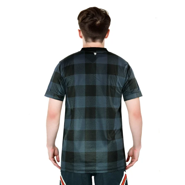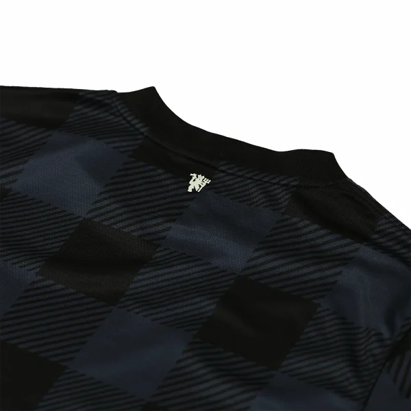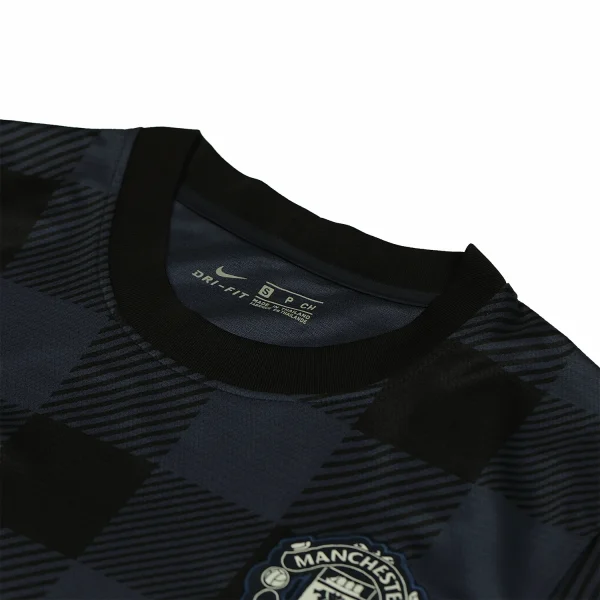 The shirt is predominantly a striking gingham pattern, creating a unique and visually appealing look. This innovative design pays homage to the city of Manchester’s rich history in the textile industry. The fabric is engineered for high performance, ensuring a lightweight and breathable material that offers comfort during intense matches.