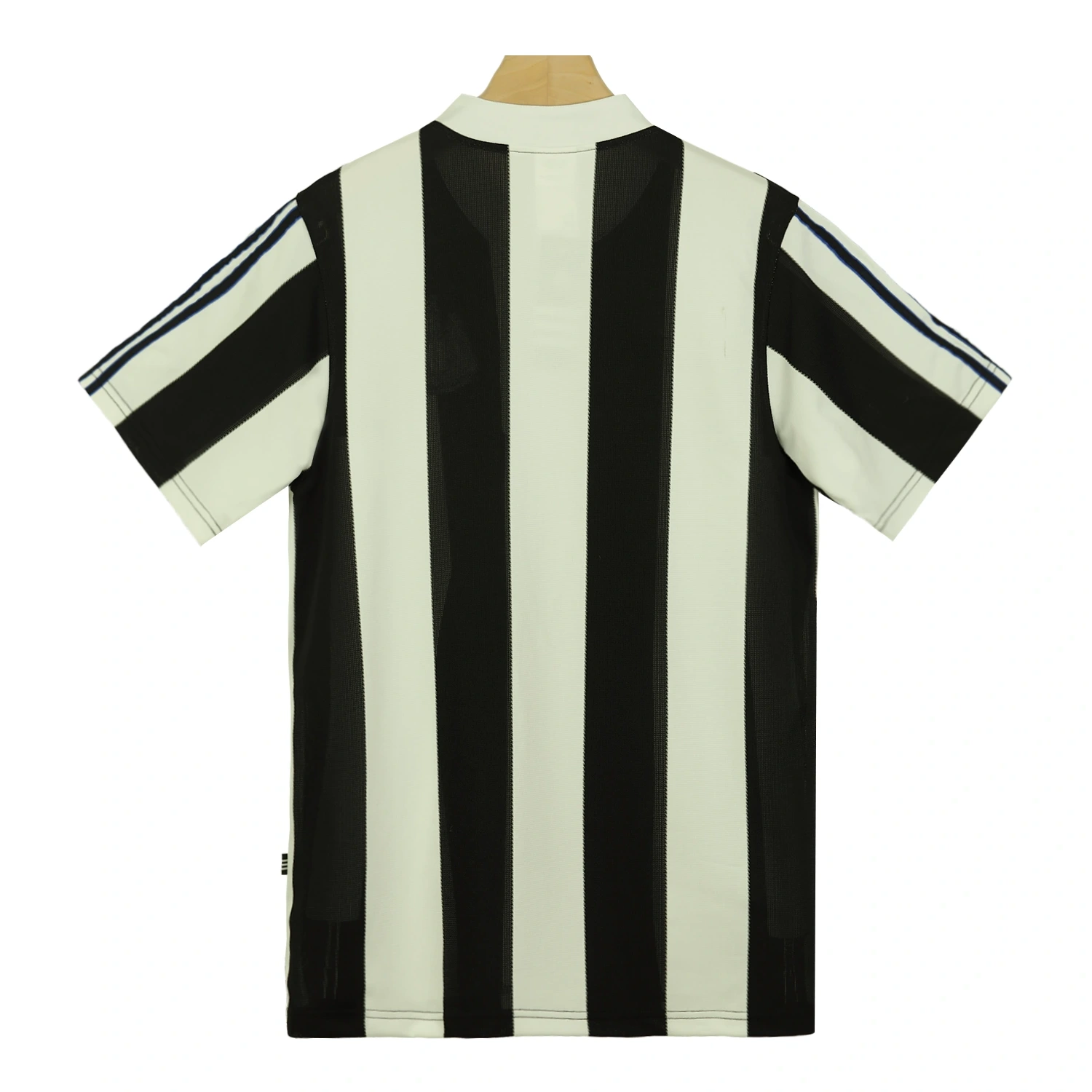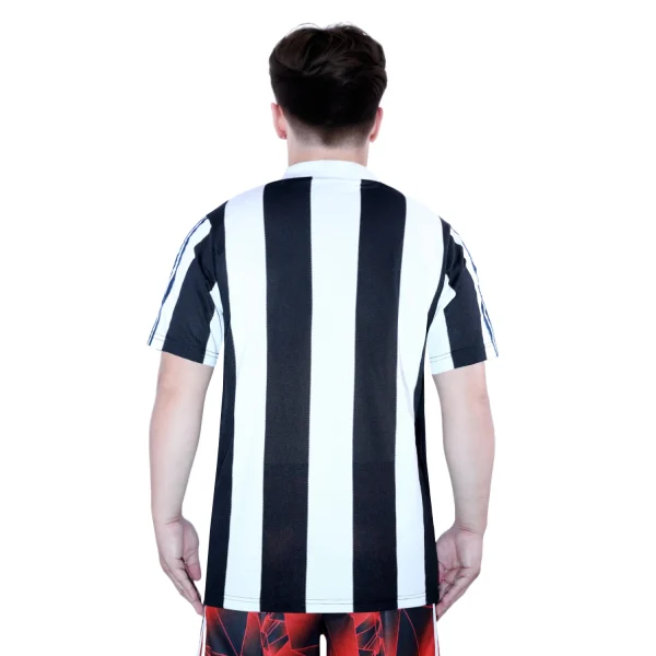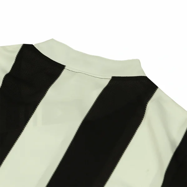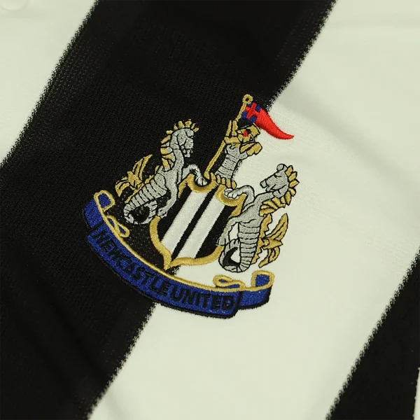 The shirt features Newcastle’s traditional black and white vertical stripes, which are wide and prominent, giving the jersey a strong and classic look. The stripes are sharply defined, embodying the club’s traditional colors and providing a striking contrast.