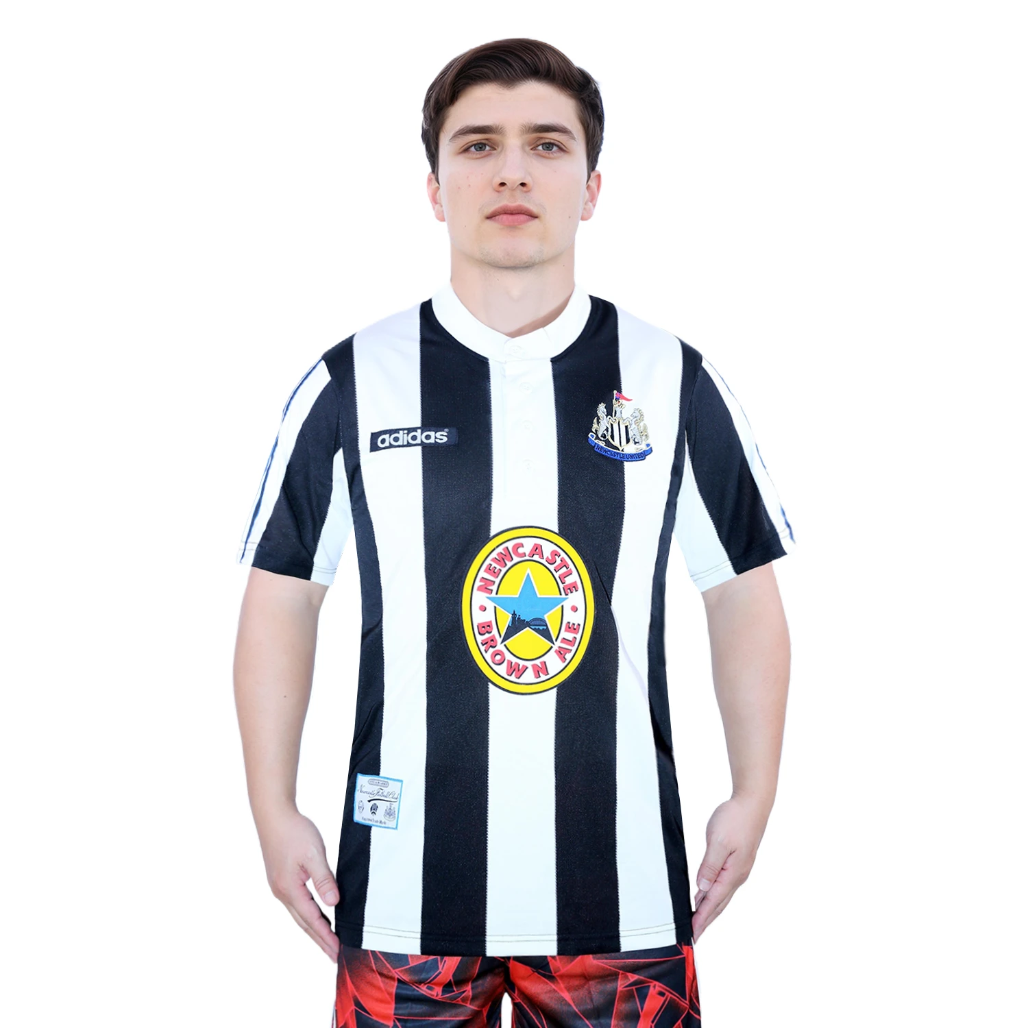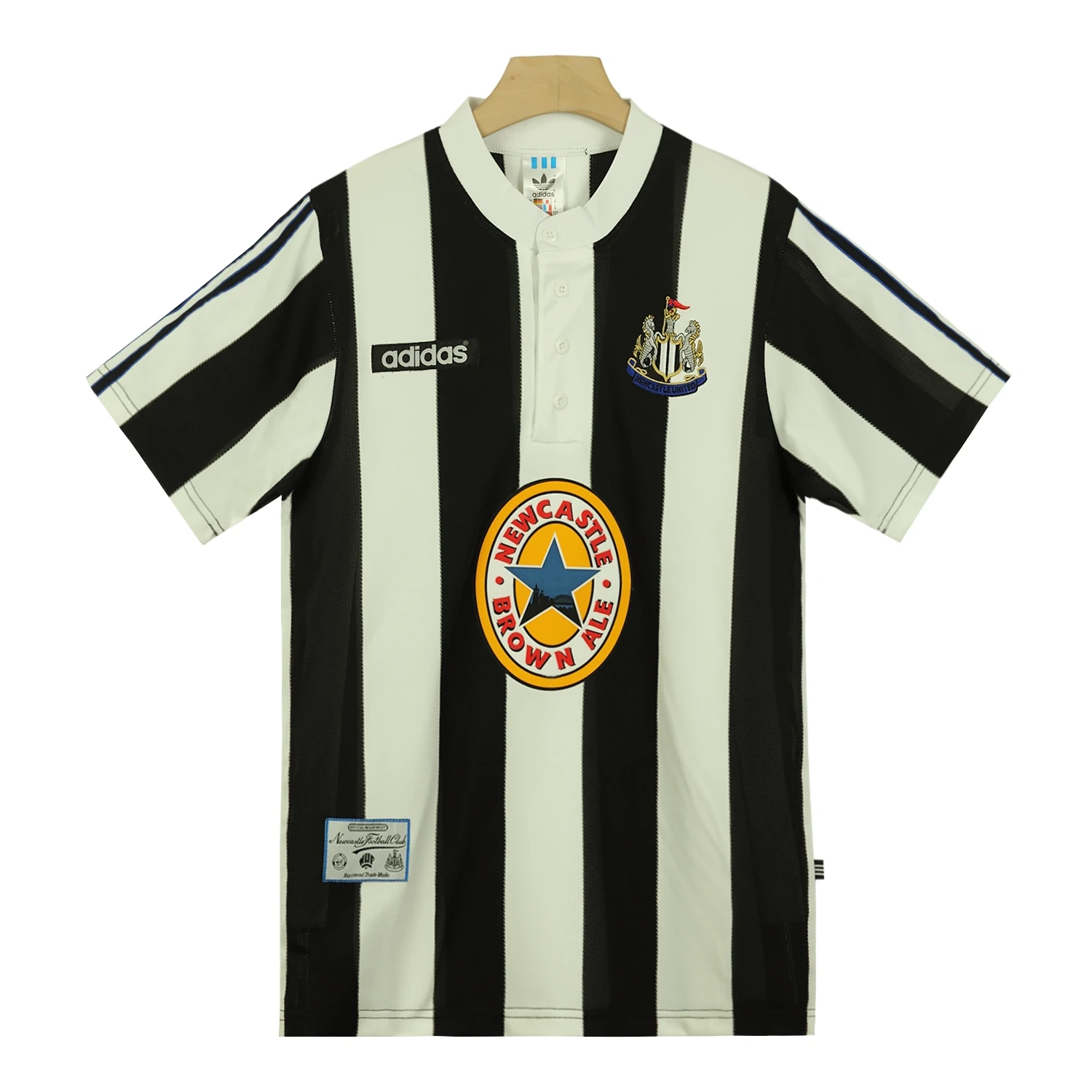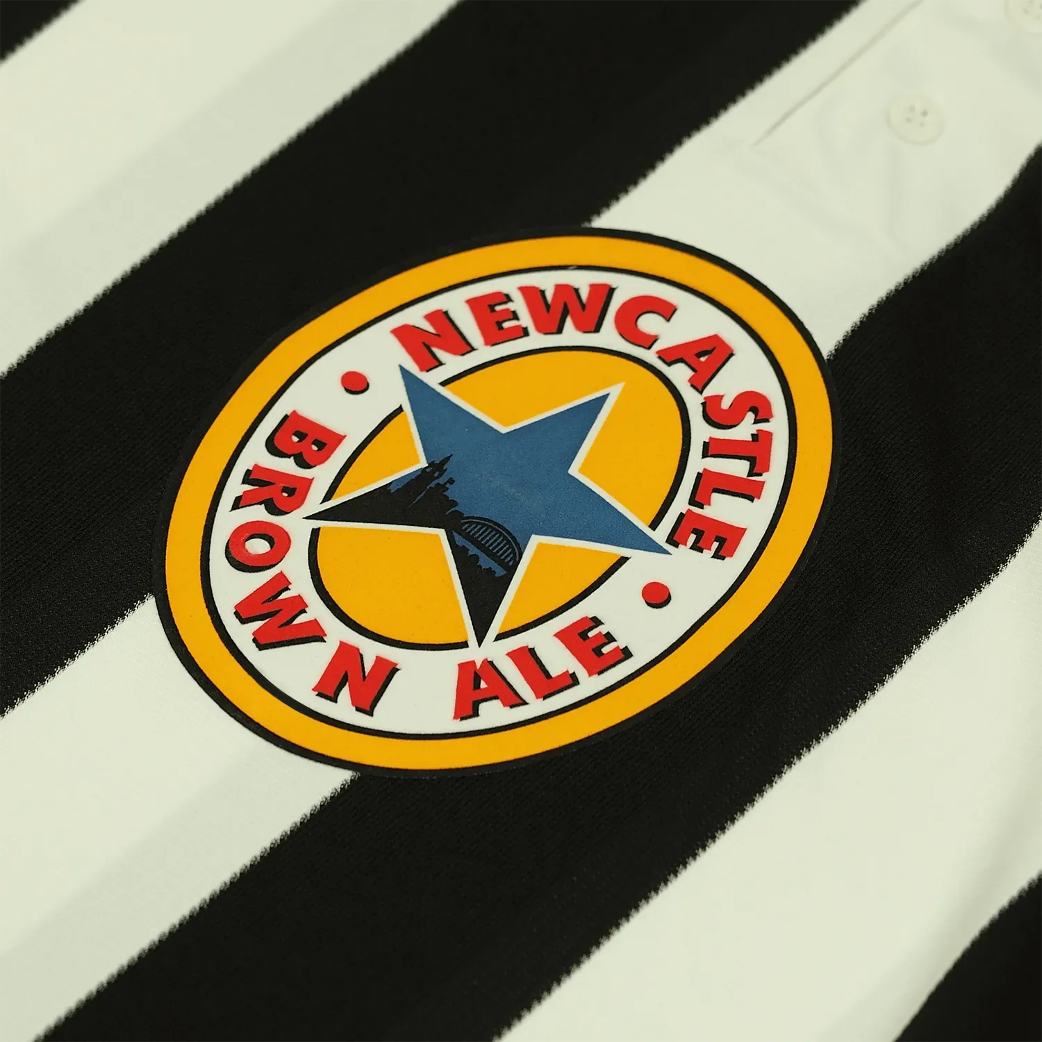 The shirt also includes the “Newcastle Brown Ale” sponsor logo across the center, reflecting the prominent sponsorship of the time. This logo is integrated seamlessly into the design, adding to the shirt’s authenticity and connection to the club’s history.
