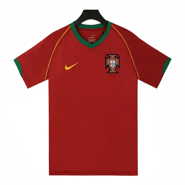 The Portugal 2006 world cup home shirt is a significant piece of football memorabilia, representing the national team’s journey during the 2006 FIFA World Cup held in Germany. This shirt is characterized by its distinctive red color, which is a hallmark of the Portuguese national team kits.