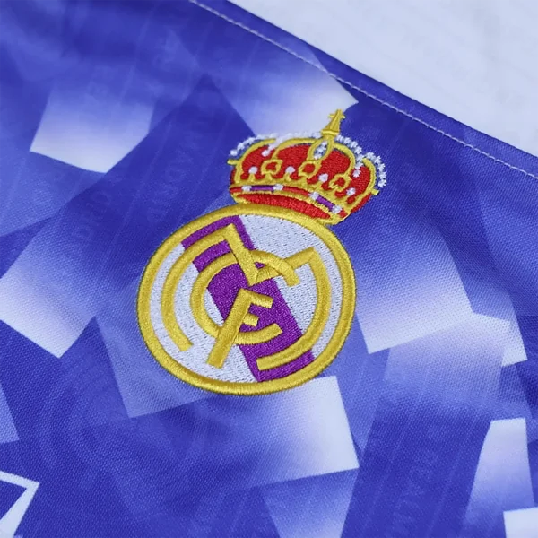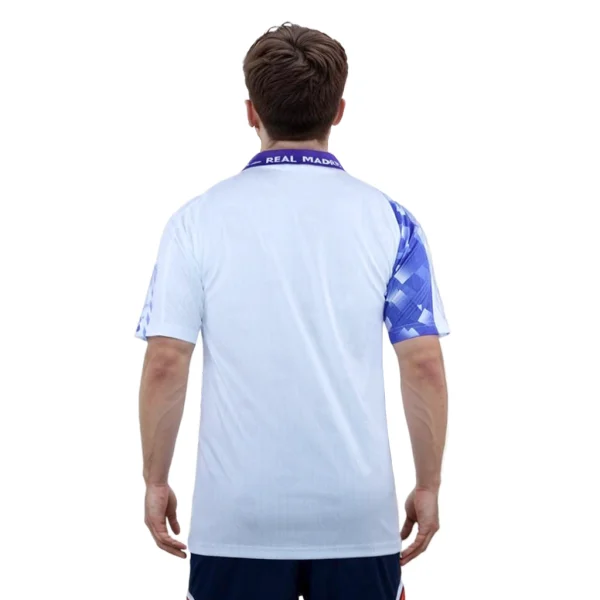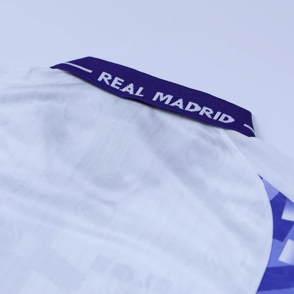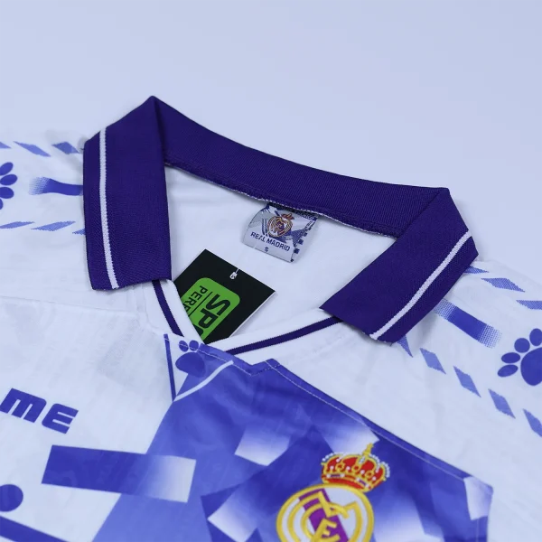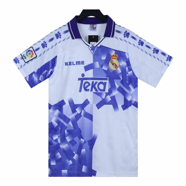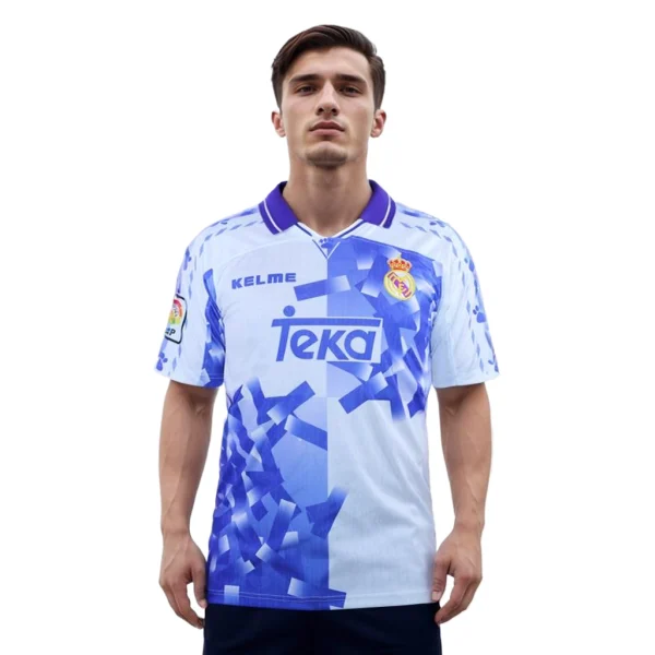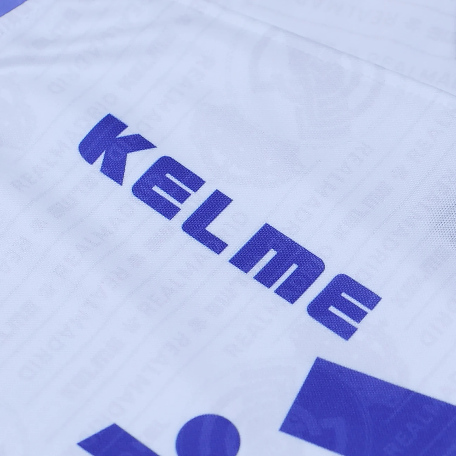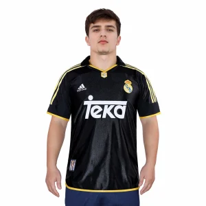 Made by Kelme, a brand known for its quality sportswear, the kit was worn by players like Fernando Redondo and Roberto Carlos during that season. The combination of these design features highlights Real Madrid’s rich football heritage and serves as a timeless representation of classic football style.