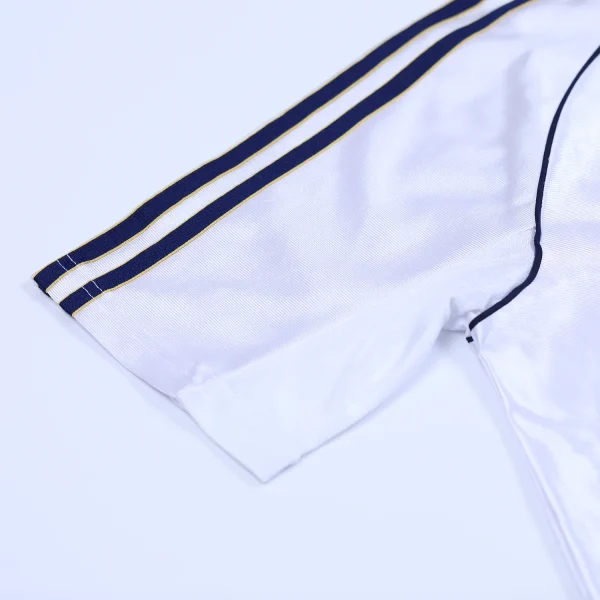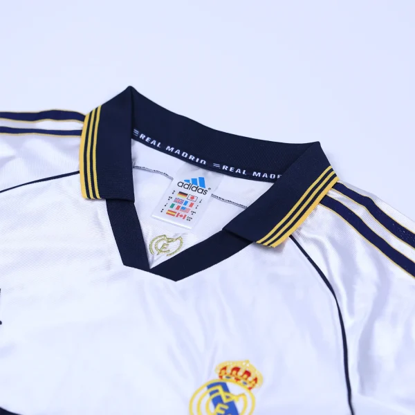 The Real Madrid home shirt from the 1998 to 2000 seasons is renowned for its classic and elegant design, which embodies the club’s prestigious identity.