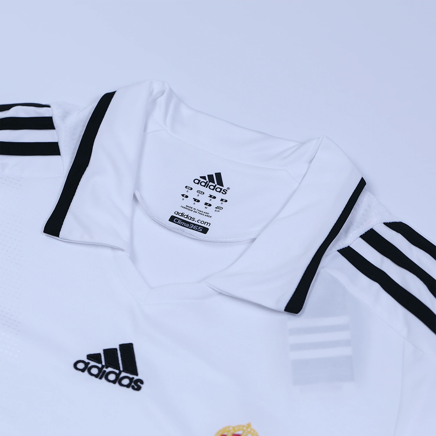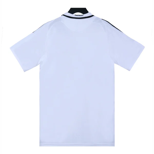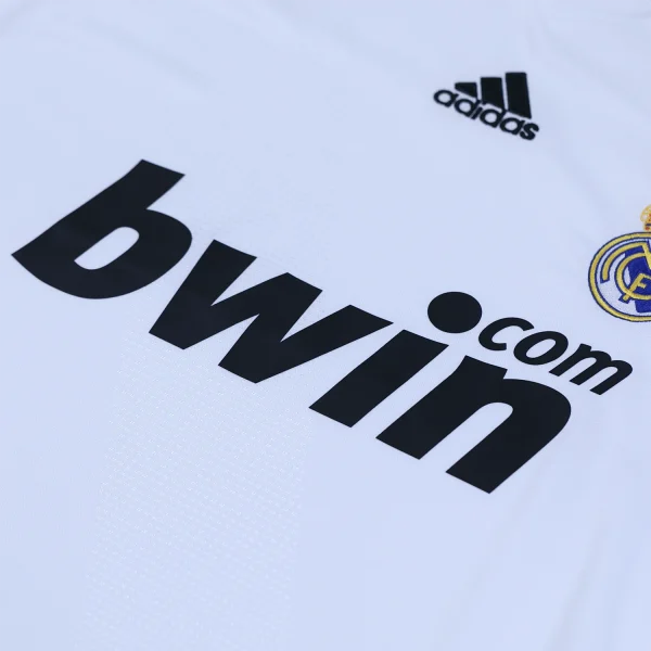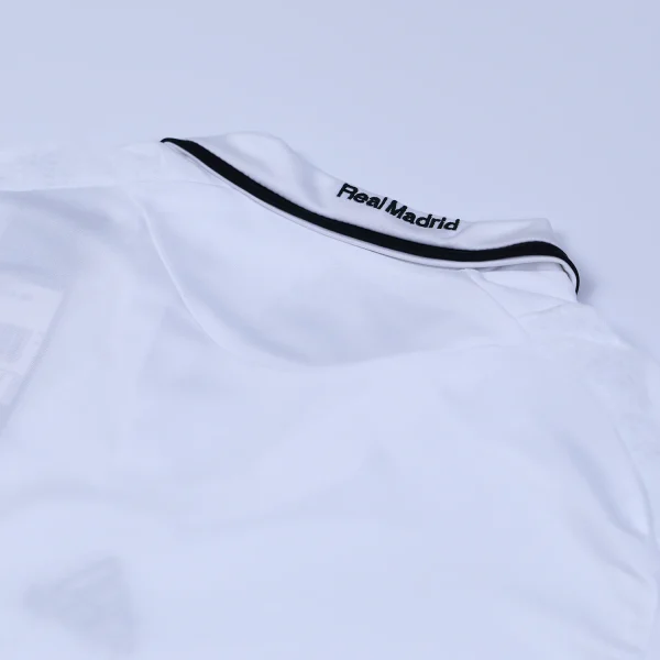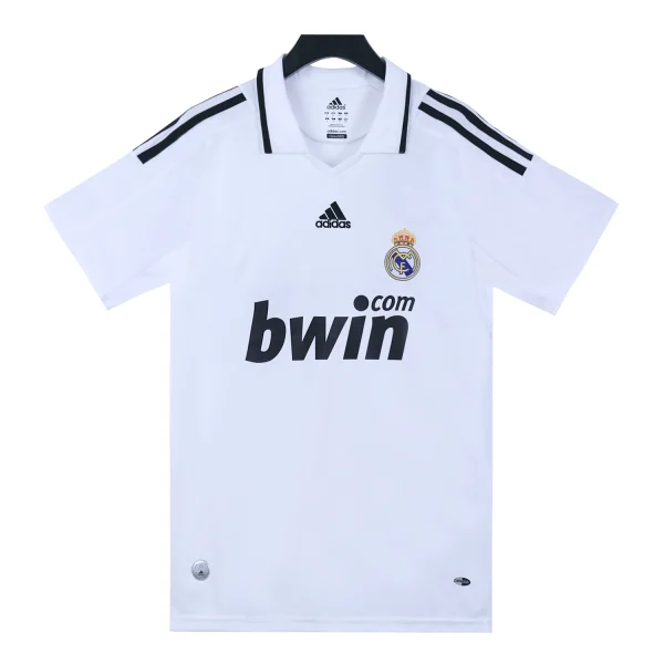 The Real Madrid 2008-09 home shirt is a notable piece of football apparel that reflects the club’s rich history and competitive spirit during that season. Manufactured by Adidas, the shirt features a classic white base with black accents, reminiscent of designs from previous seasons.