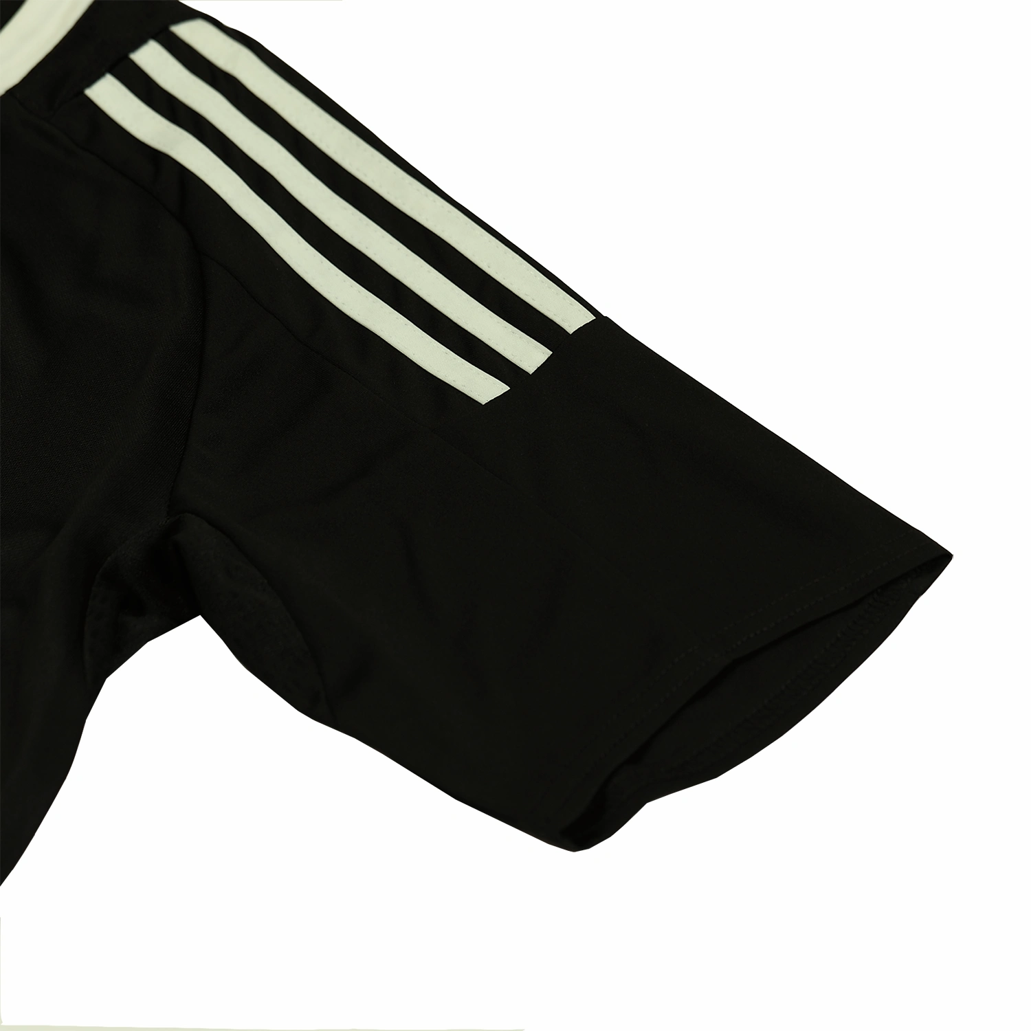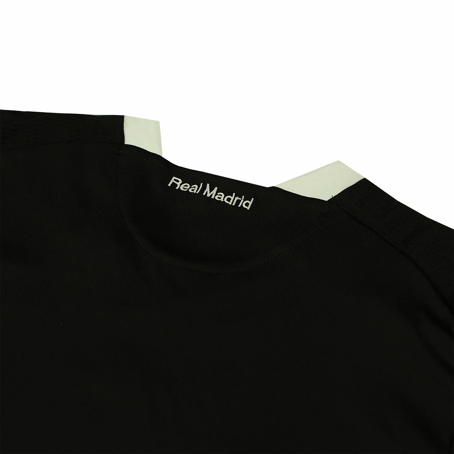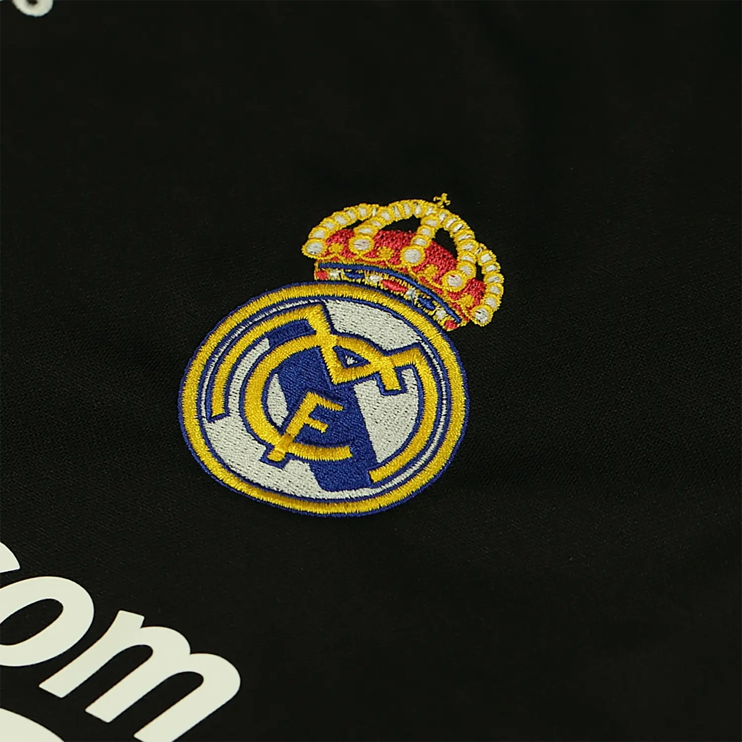 The Real Madrid 2008-09 third shirt is a notable piece of football apparel, characterized by its classic all-black design with white accents. This shirt was produced by Adidas and was used during the 2008-09 La Liga season, reflecting a return to a simpler aesthetic reminiscent of earlier designs from the club’s history.