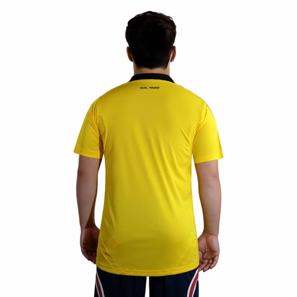 This jersey was worn during a remarkable season when Real Madrid, under coach José Mourinho, claimed the La Liga title, breaking several records including most goals scored in a single season with 121 goals. The shirt features a vibrant yellow color, which is iconic for goalkeeper kits.