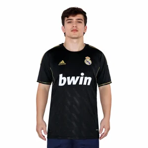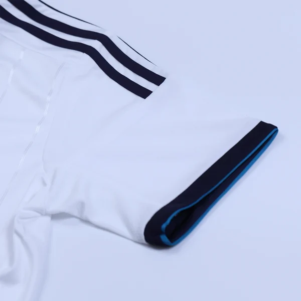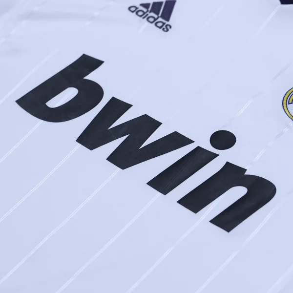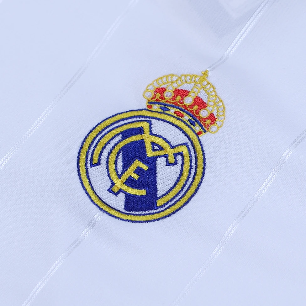 The Real Madrid 2012-13 home shirt is a blend of tradition and modern design, celebrating the club’s 110th anniversary. The primary color is white, a hallmark of Real Madrid, symbolizing purity and excellence.