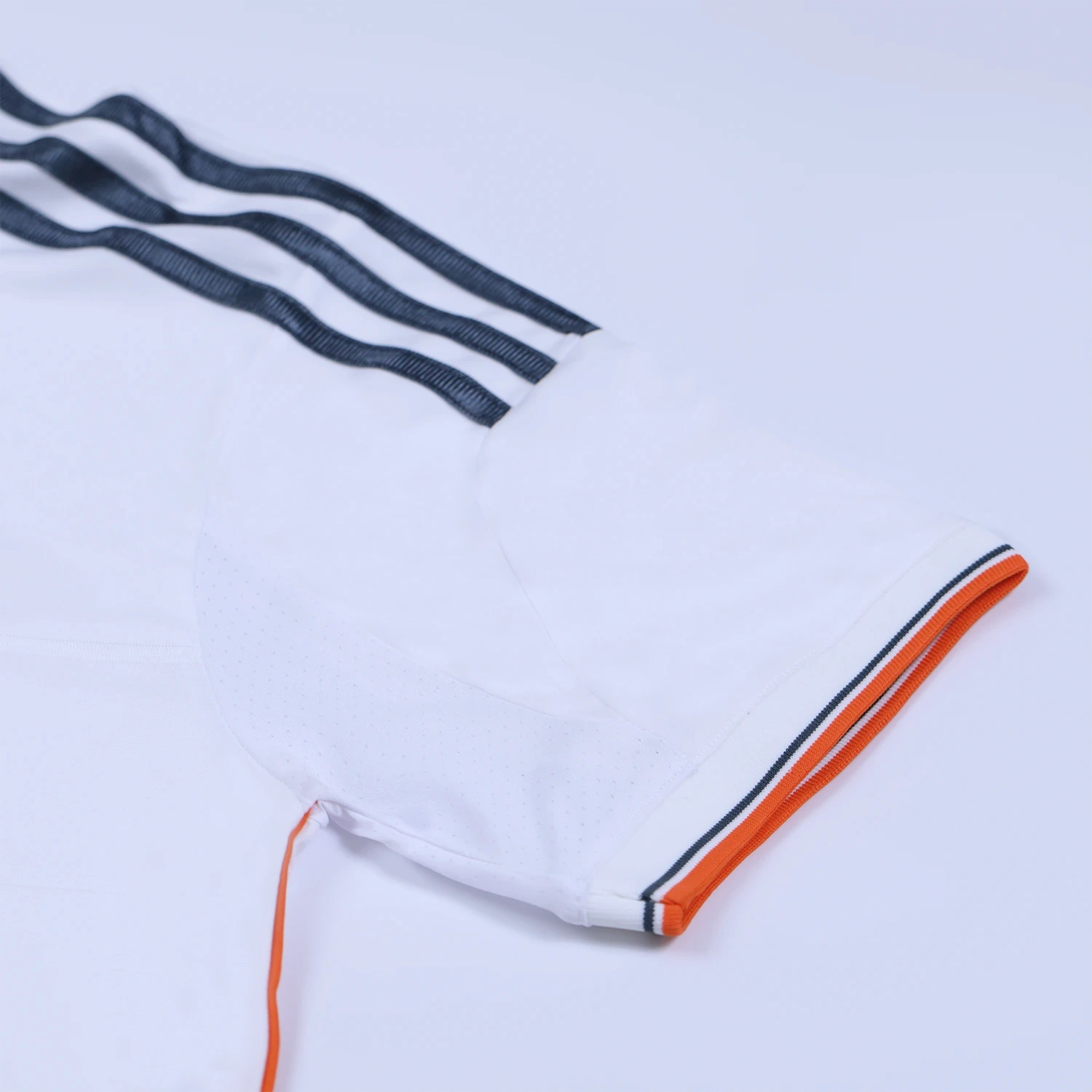 The collar and sleeve trims are designed in a combination of white, orange, and grey, further emphasizing the innovative approach taken by adidas for this season’s kit. Additionally, the shirt is made using adidas’ Climacool technology, which helps players manage their body temperature during matches, adding a functional aspect to its modern feel.