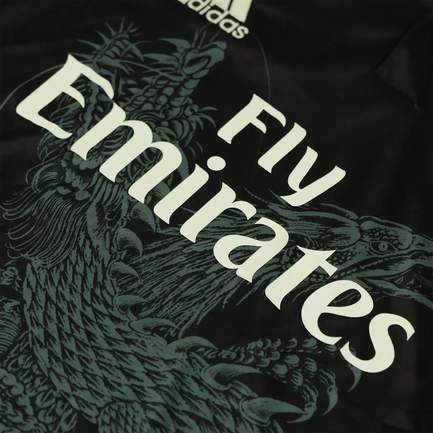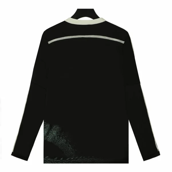 A standout feature of the shirt is the intricate graphic of two intertwined mythical creatures—a dragon king and a dragon bird—across the torso. These motifs are deeply rooted in Eastern culture, symbolizing strength, determination, and agility. The dragon king represents greatness and glory, while the dragon bird signifies resilience and the ability to thrive in challenging situations. This artistic choice not only reflects Yamamoto’s unique aesthetic but also embodies the core values of Real Madrid as a club.